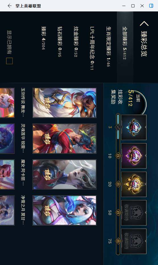黄金段位-172英雄-367皮肤-32炫彩-1终极-4神话-40限定-27传说-100史诗