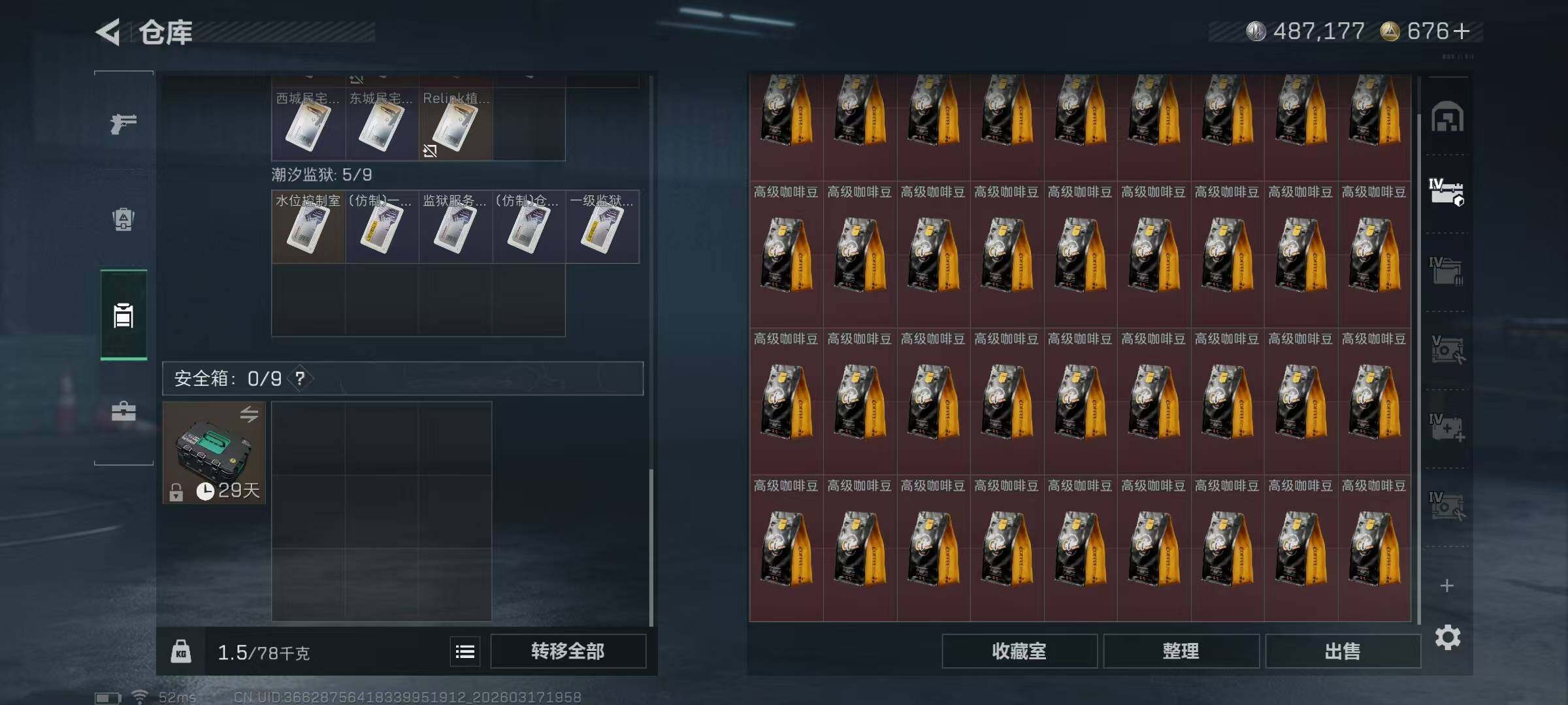 【SJ1442】【无封禁有二次信条带S8顶级3X3】60级/总资269M/流资235M/676点卷/刀皮(信条)红狼(电锯惊魂)骇爪(维什戴尔)/8级仓库7级体力4级负重1级潜水/59发AW子弹