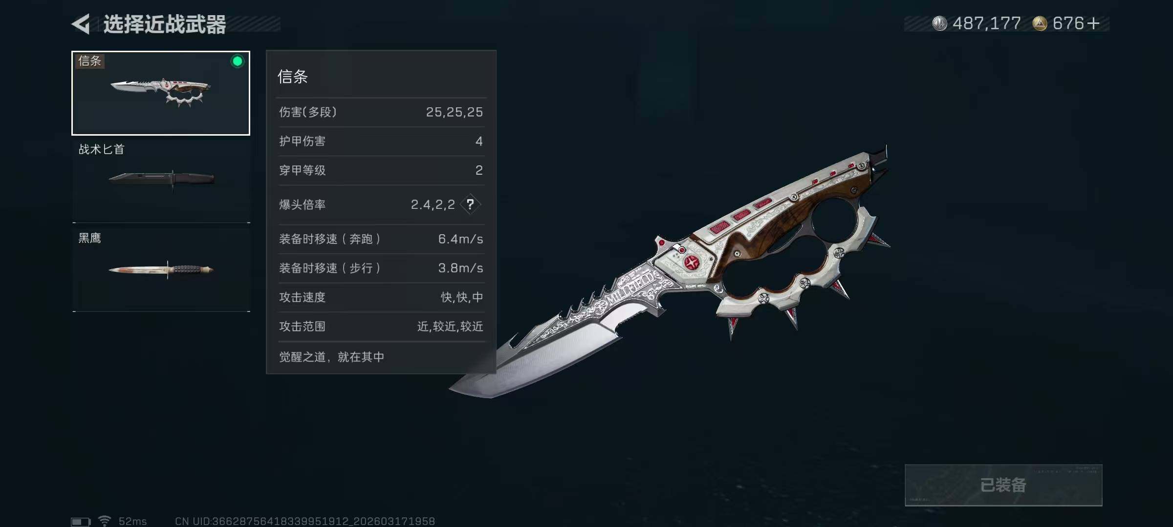 【近战皮肤】:近战-信条,近战-黑鹰