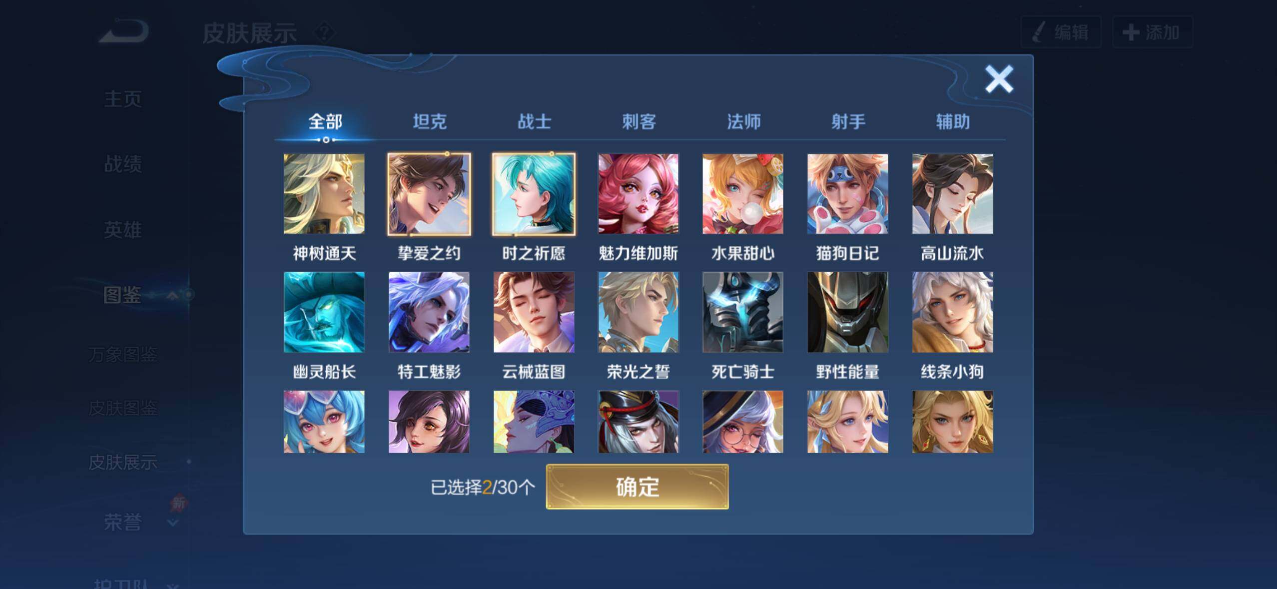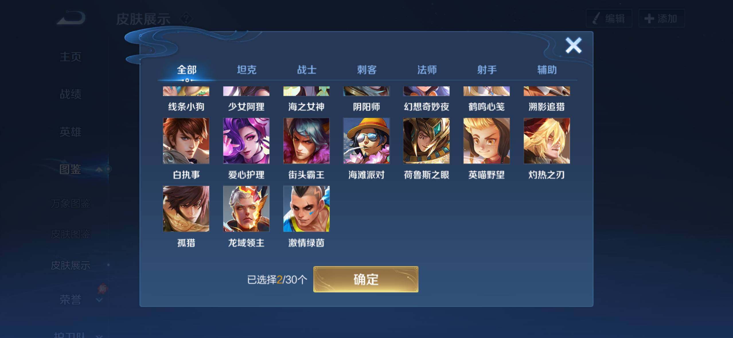 【限定皮肤】:狄仁杰阴阳师,庄周高山流水,项羽海滩派对,云中君时之祈愿,孙策挚爱之约