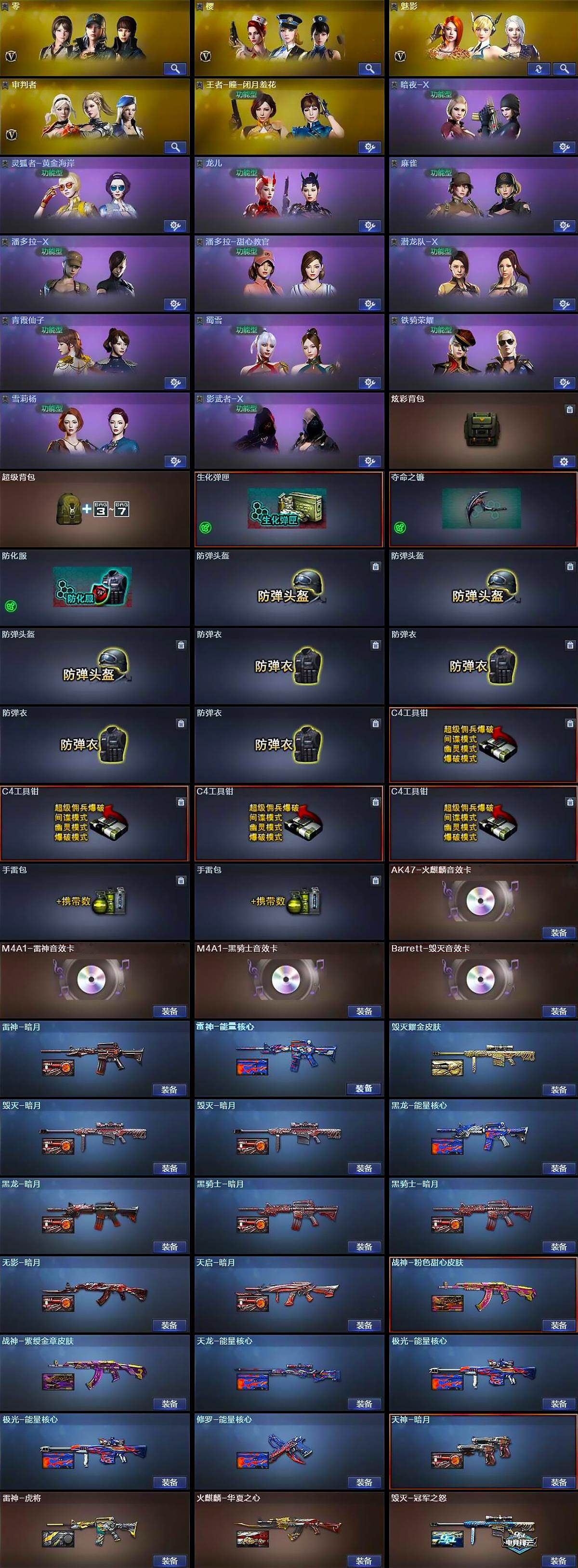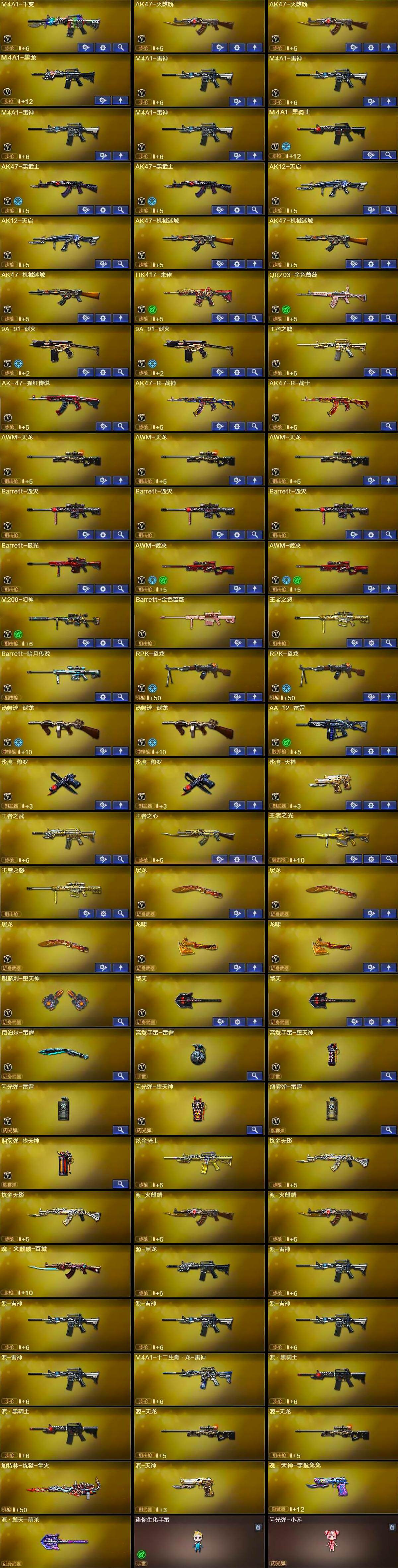 广西一区-76V-6王者武器数-3炫金武器数【热门武器】:QBZ03-金色蔷薇,HK417-朱雀,M200-幻神,金色小号,M4A1-黑骑士,汤姆逊-烈龙*2,RPK-盘龙*2,沙鹰-修罗*2【王者炫金武器】:王者之武,王者之心,王者之光,王者之怒,炫金骑士,炫金无影*2【音效卡】:AK47-火麒麟音效卡,M4A1-雷神音效卡,M4A1-黑骑士音效卡,Barrett-毁灭音效卡【皮肤】:雷神-暗月,雷神-能量核心,雷神-虎将,火麒麟-华夏之心,毁灭-暗月*2,毁灭耀金皮肤,毁灭-冠军之怒,黑龙-