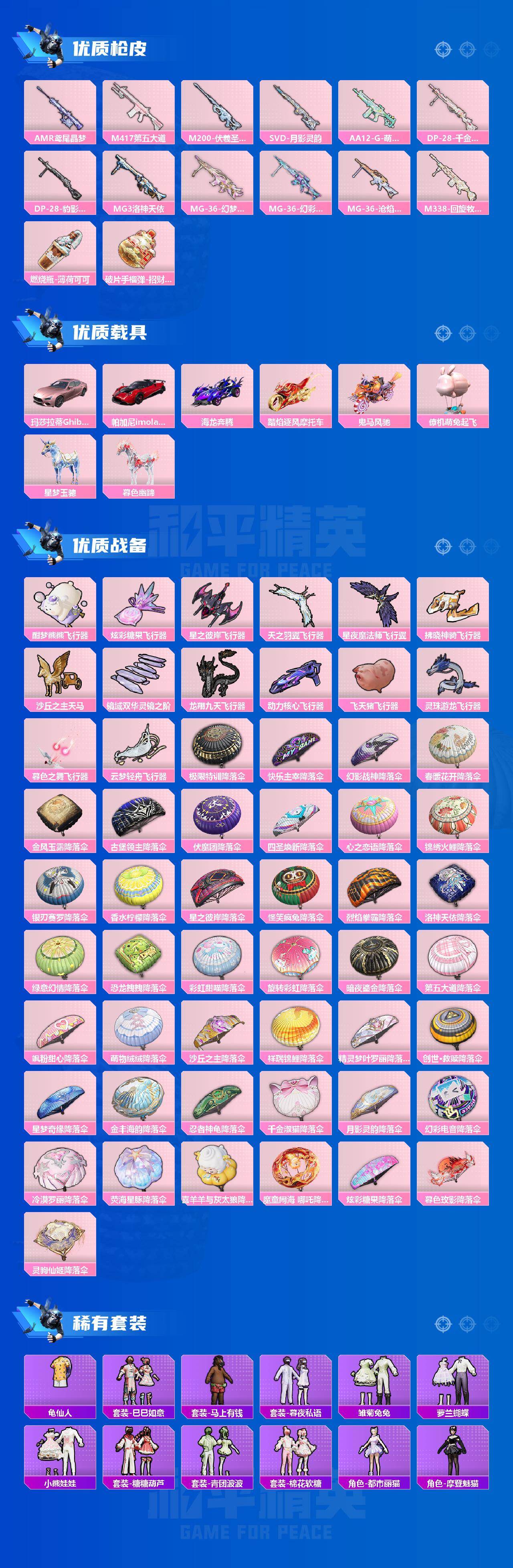 苹果 手Q-2神装-13粉装-37特效枪-7载具-15粉色飞行器-159086