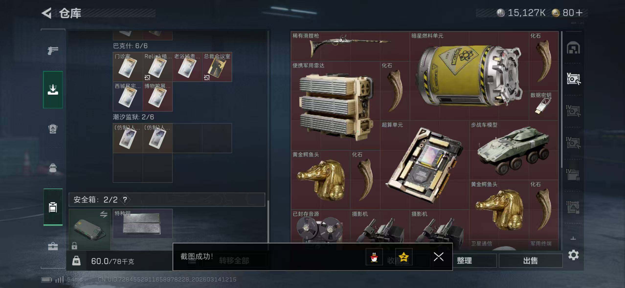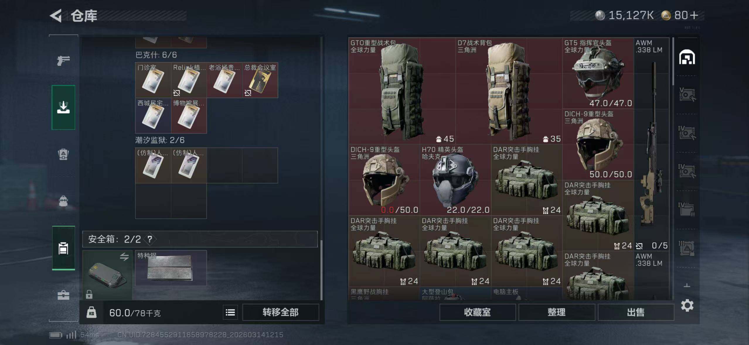 254m总资产-15127k哈夫币-60烽火等级-黄金