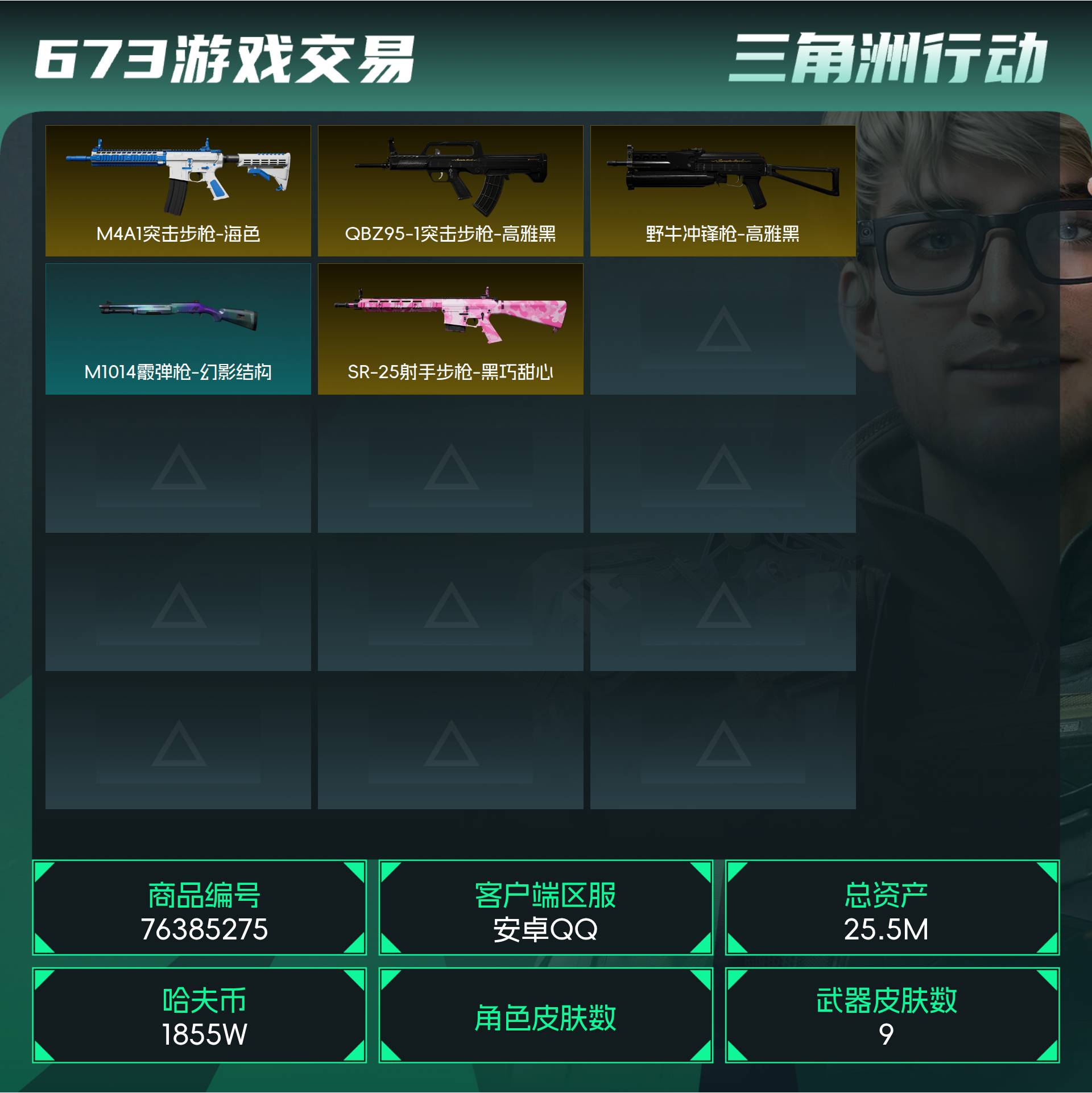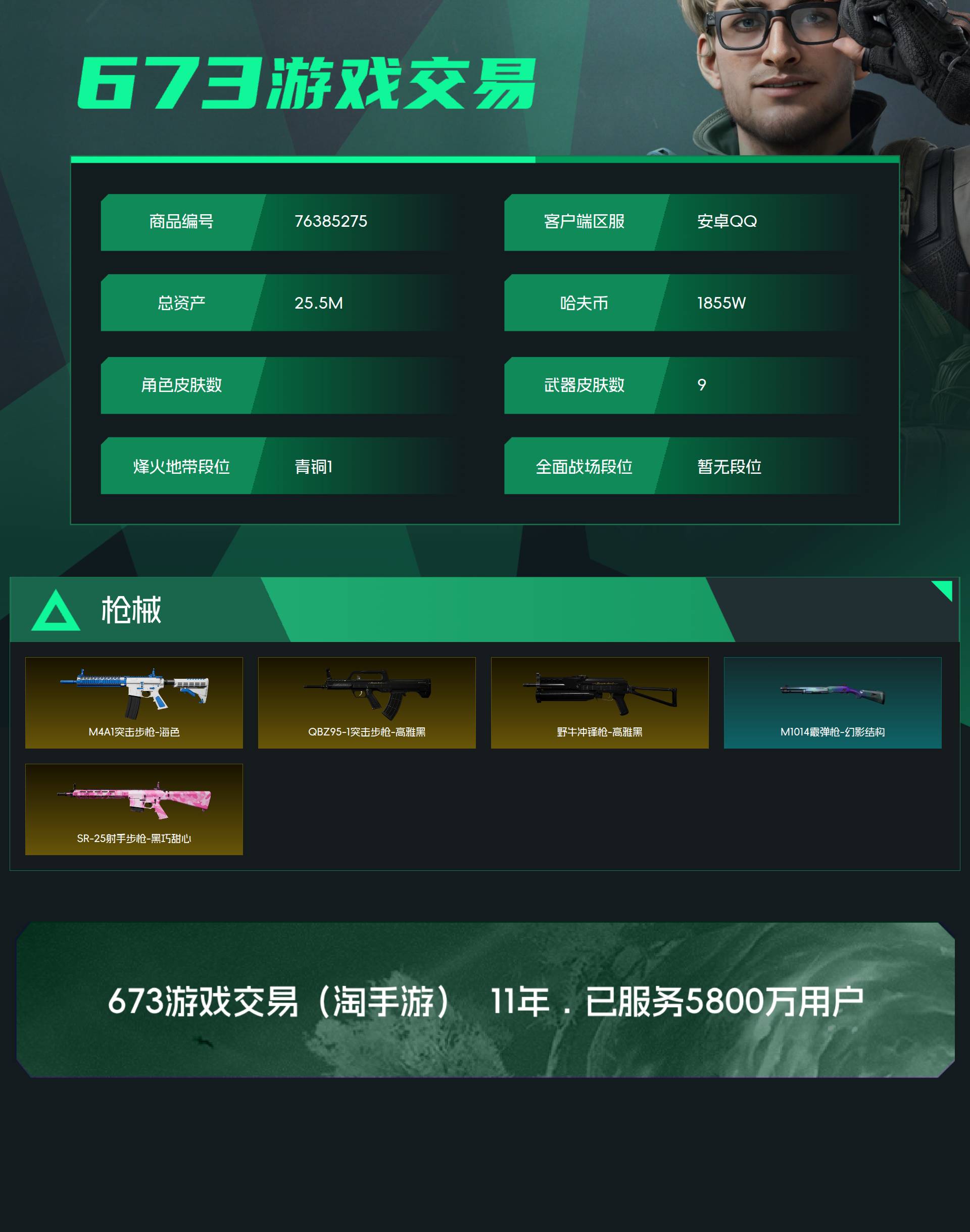 烽火段位青铜1 战场段位暂无段位 总资产25.5M 哈夫币1855W 挂饰1 枪械9 载具2