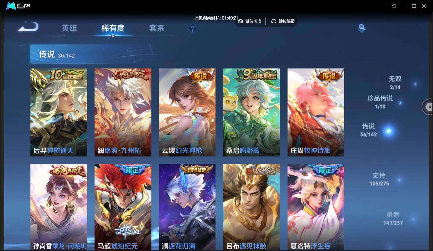 不可二次-贵9-128英雄-366皮肤-2典藏-2无双-1珍品-3星元-36传说-1天幕-16按键-贵族积分12.4w
