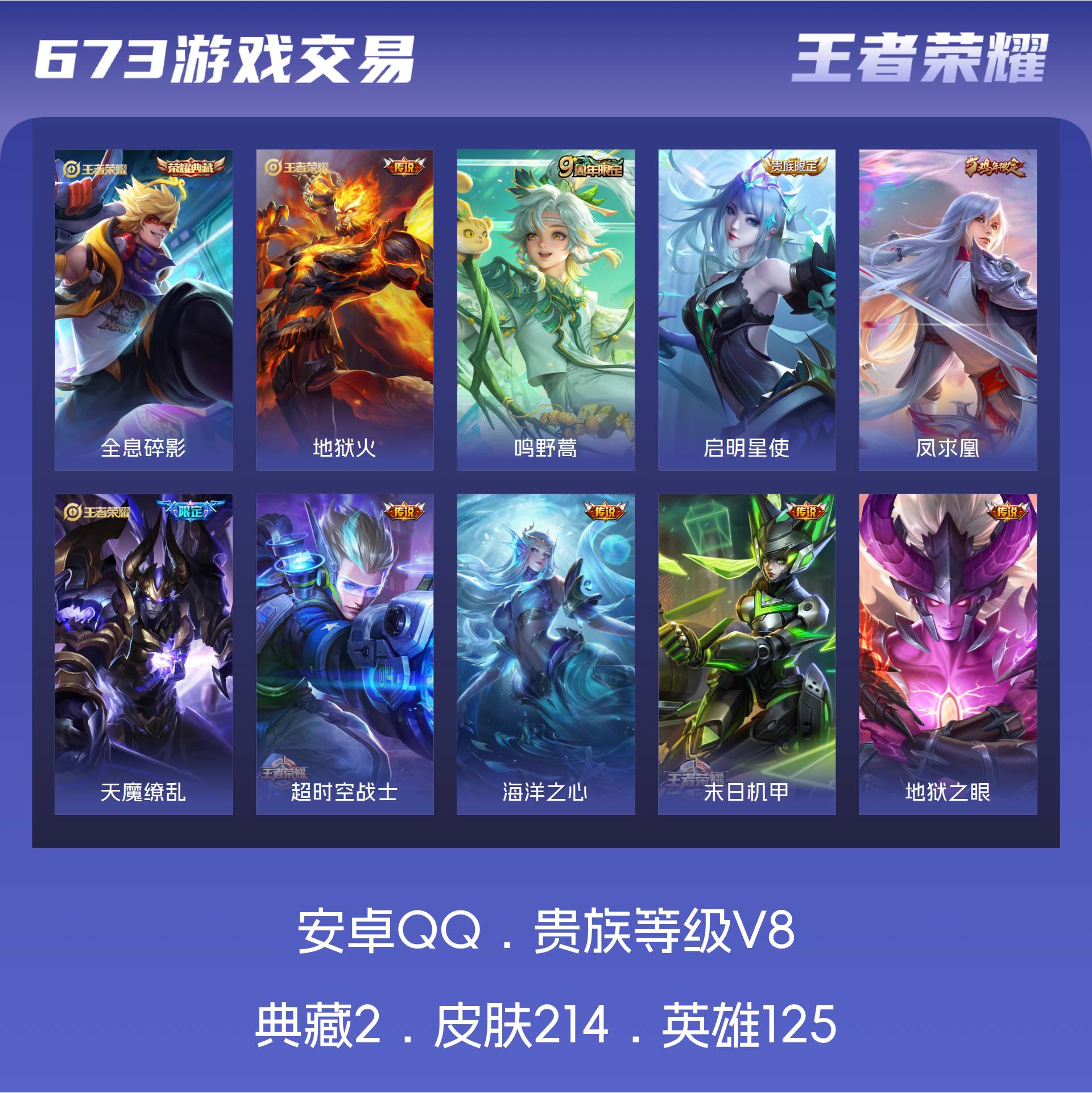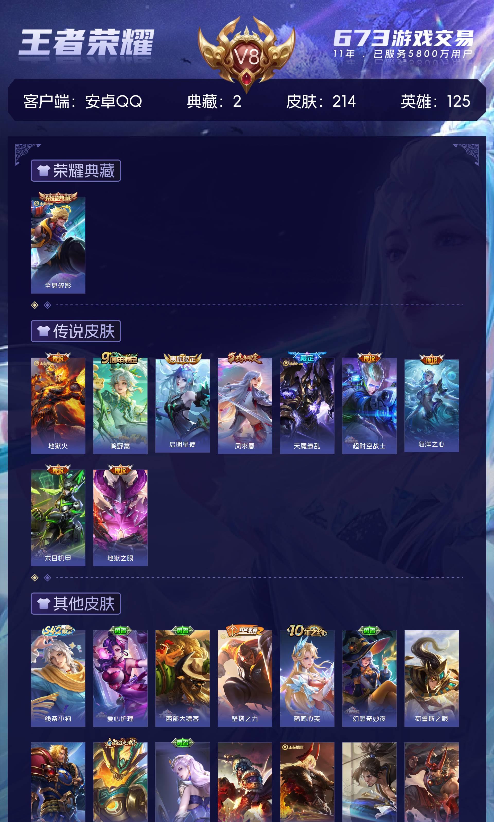 V8 皮肤214 英雄125 永恒钻石 荣耀典藏2 传说9
