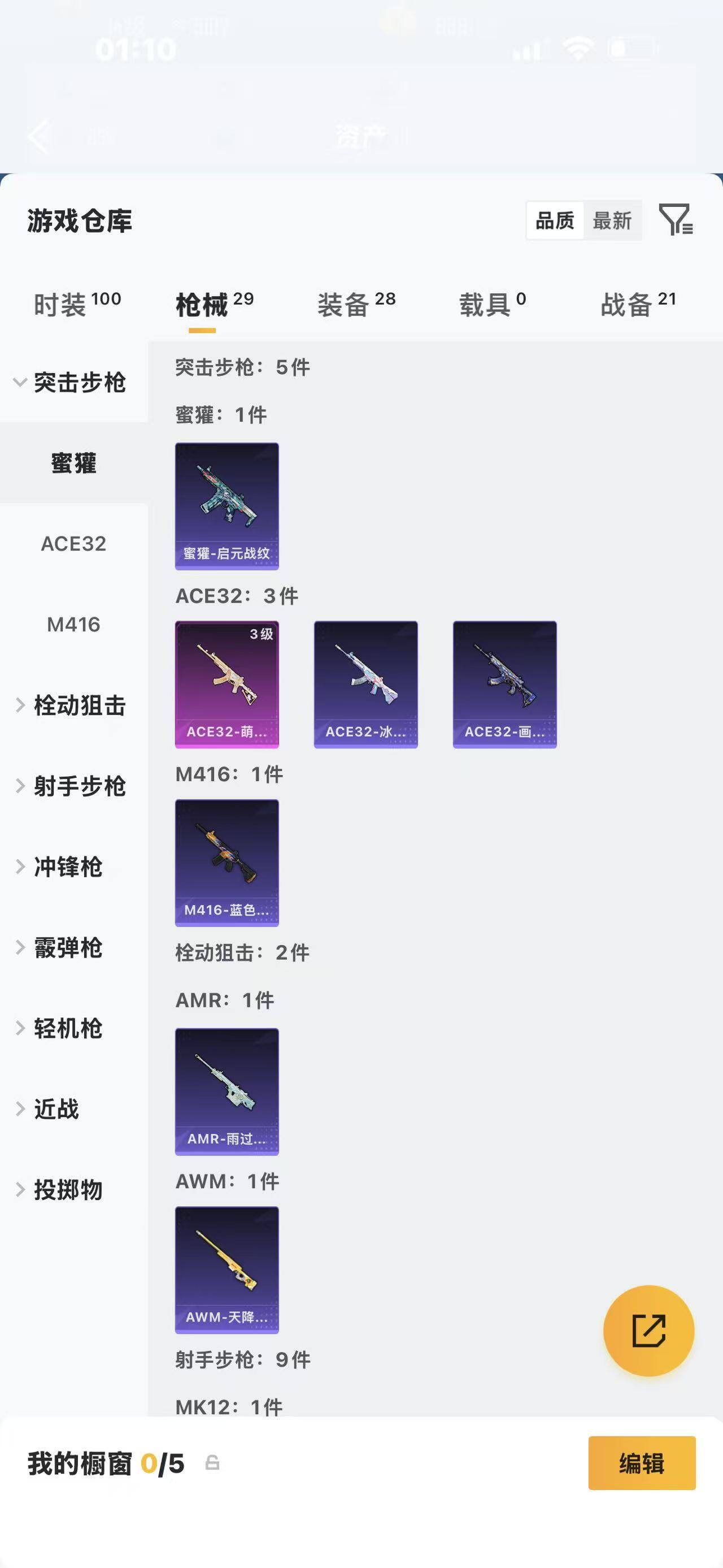 21套装/枪械2/装备28/战备21/热力值6891/三级ACE32-萌骑漫游