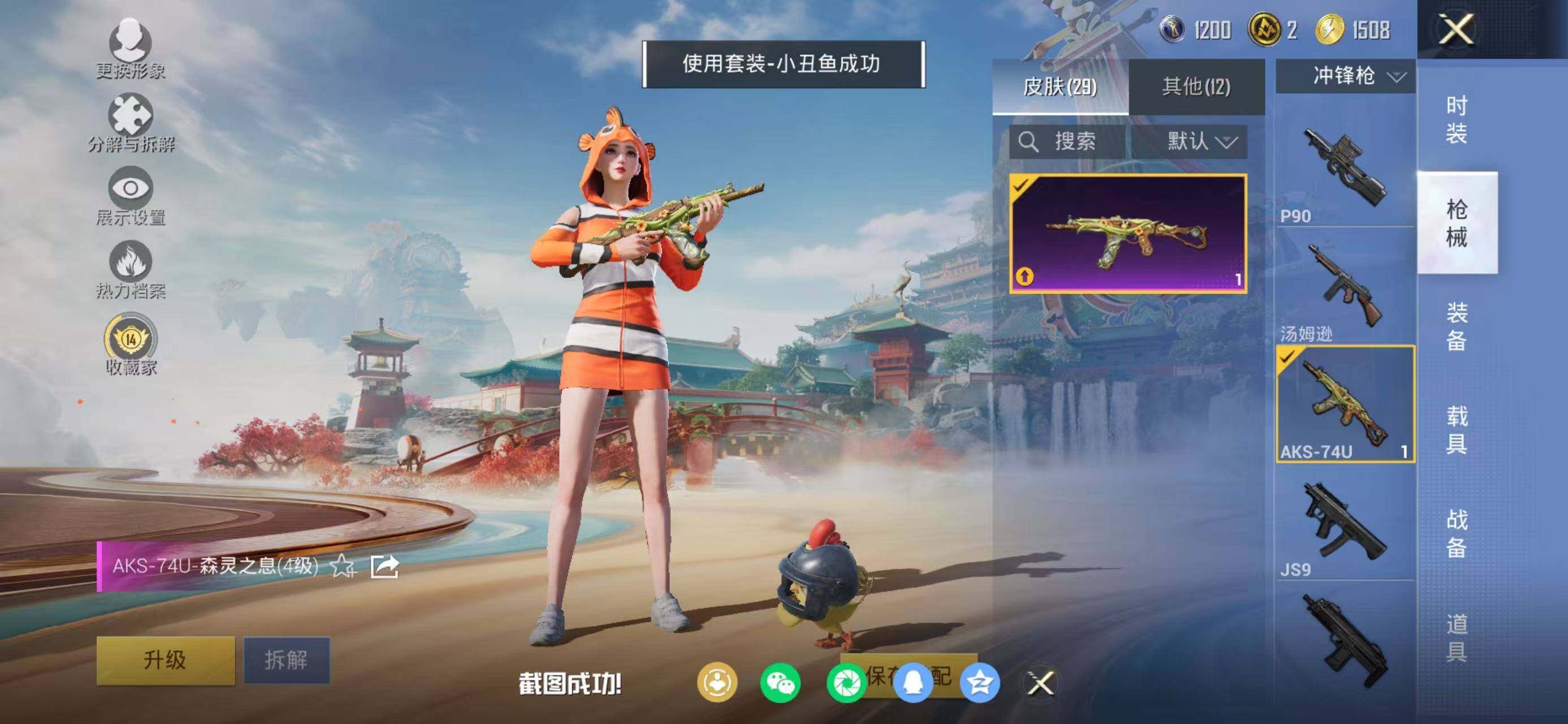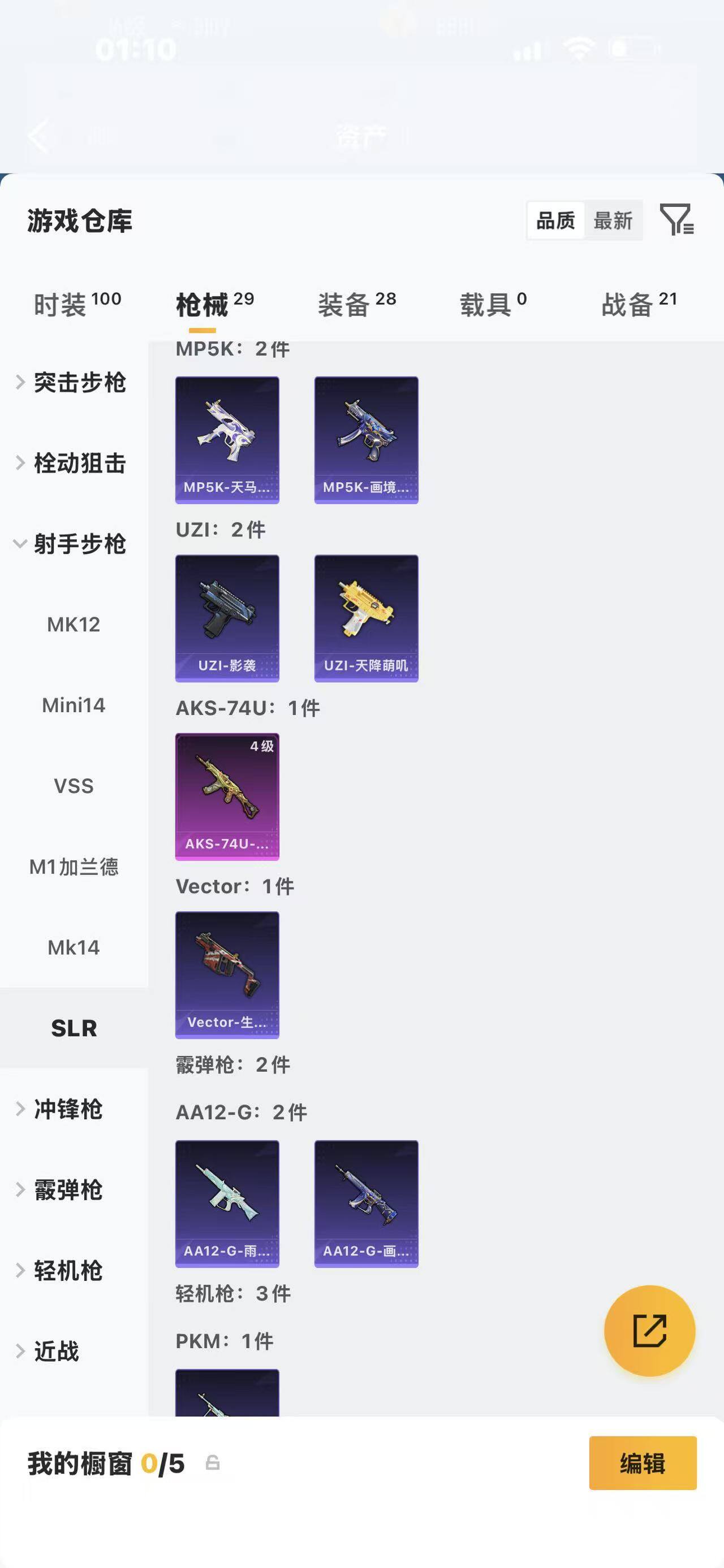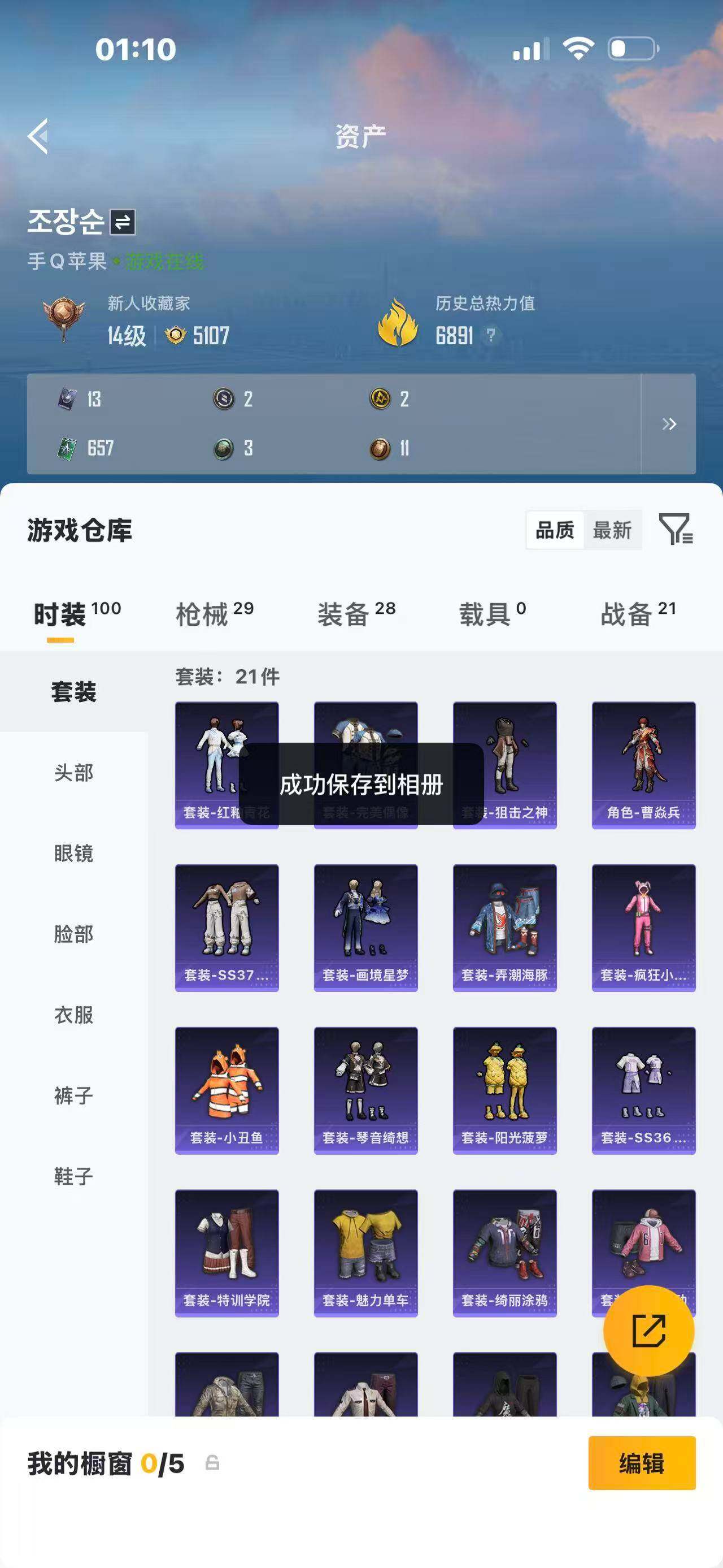 21套装/枪械2/装备28/战备21/热力值6891/三级ACE32-萌骑漫游/四级AKS-74U-森灵之息/小丑鱼/ACE32-萌骑漫游/AKS-74U-森灵之息/天马神君降落伞/套装-画境星梦/套装-琴音绮想/套装-红釉青花/角色-曹焱兵/M416-蓝色火焰/ACE32-画境星梦/UZI-天降萌叽/UZI-影袭/Vector-生命誓言/MP5K-天马神君/MP5K-画境星梦/VSS-星之彼岸