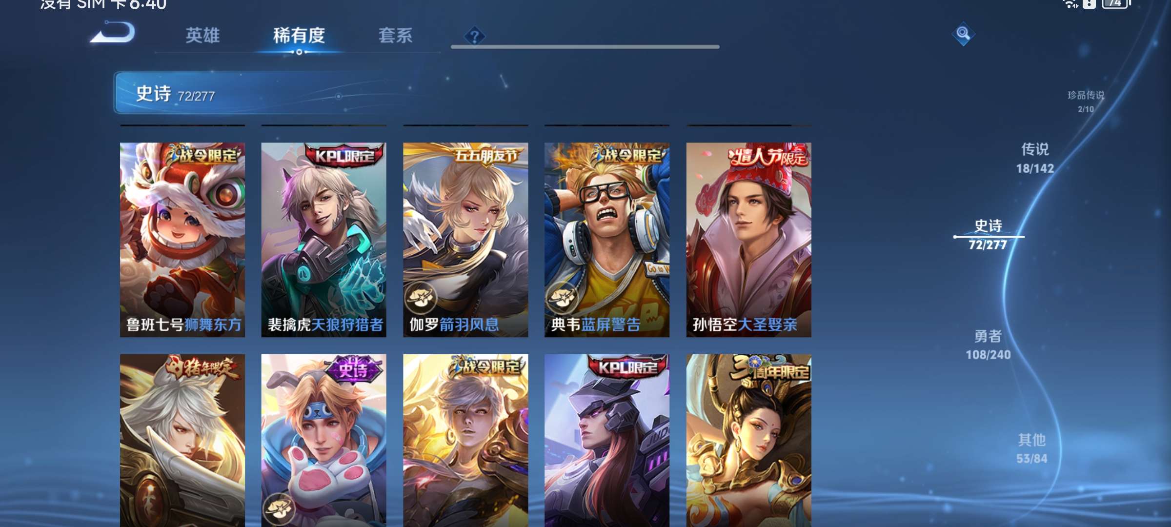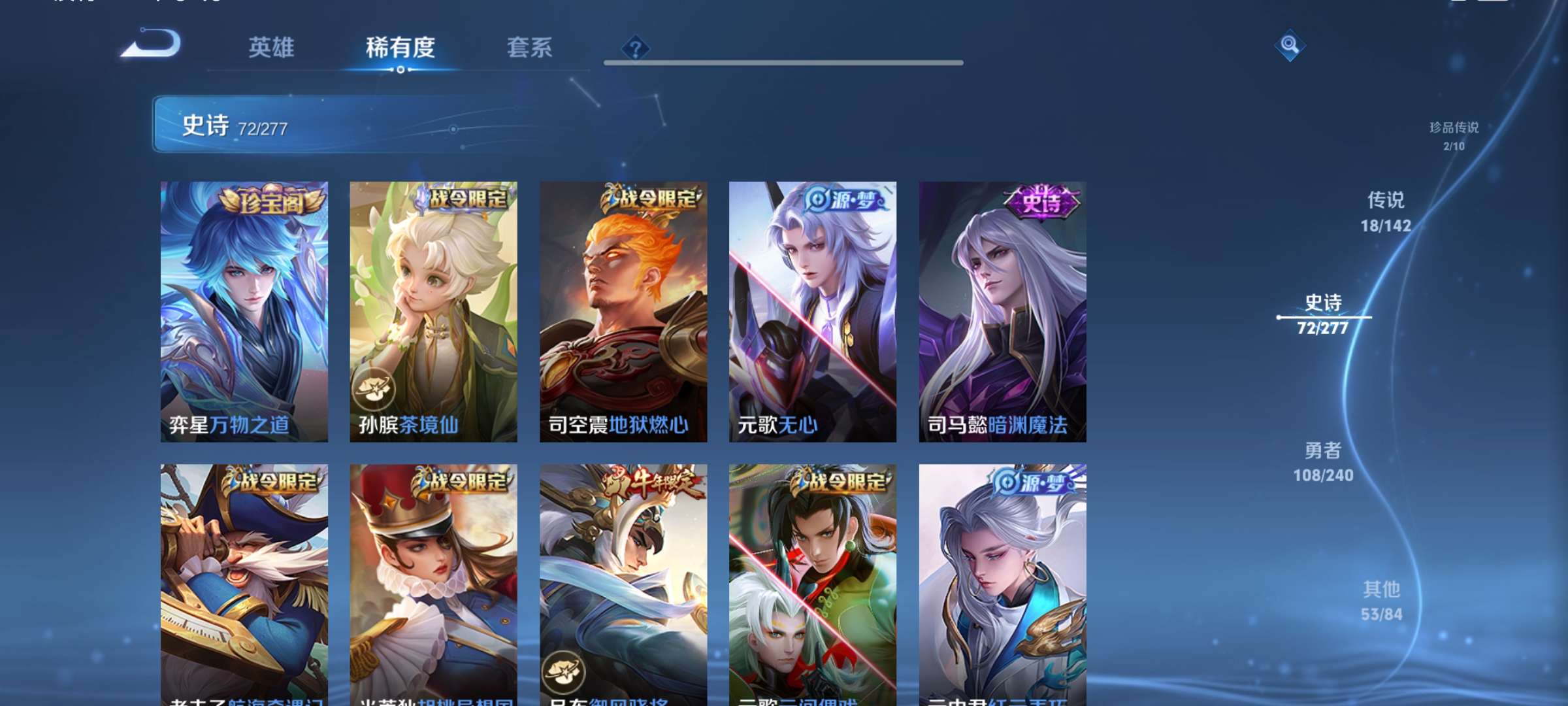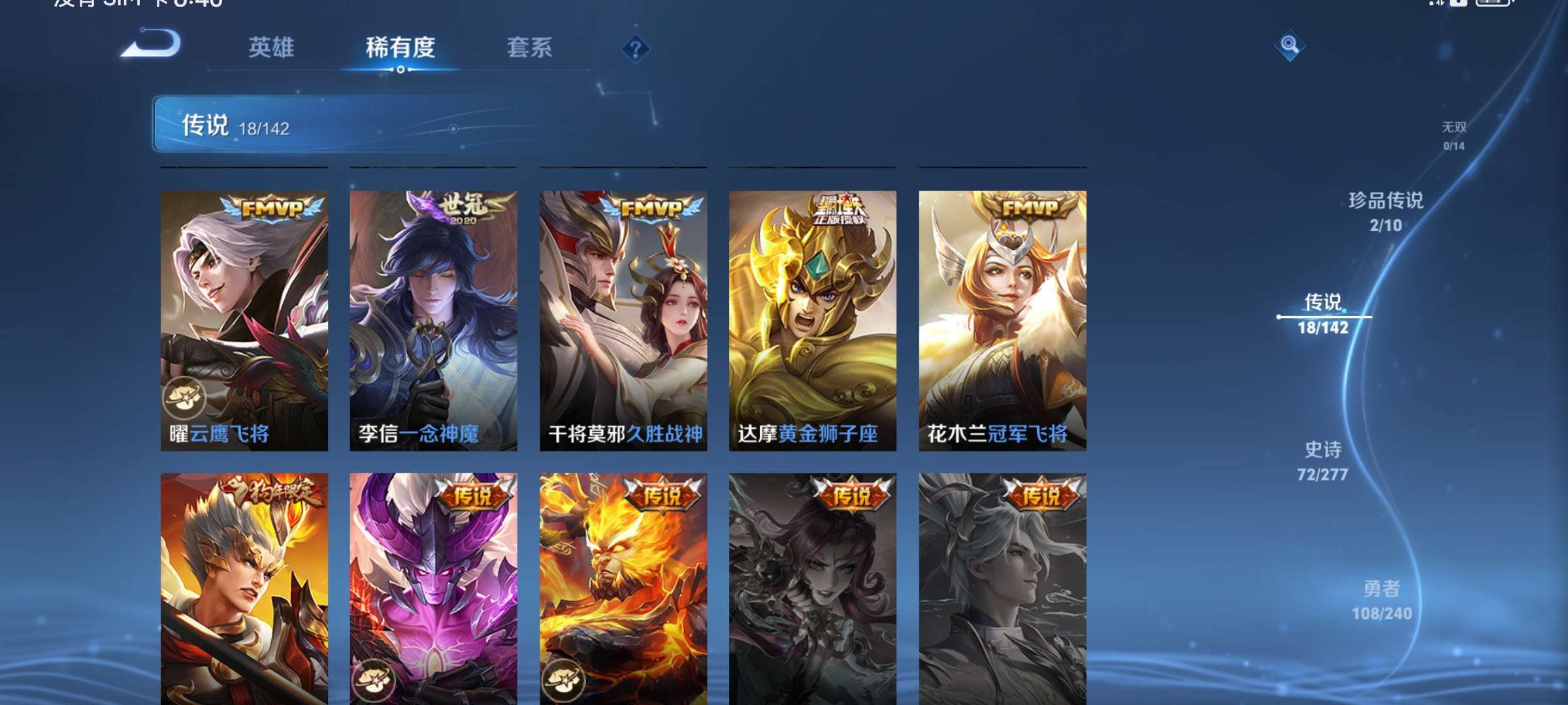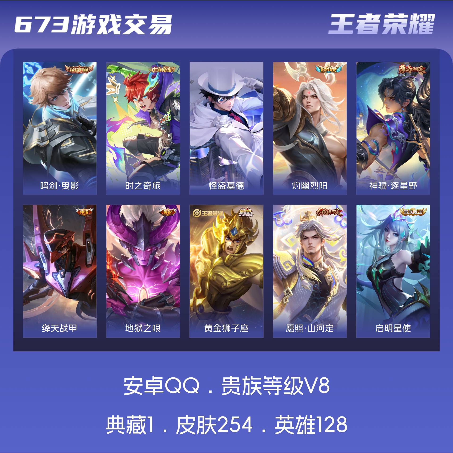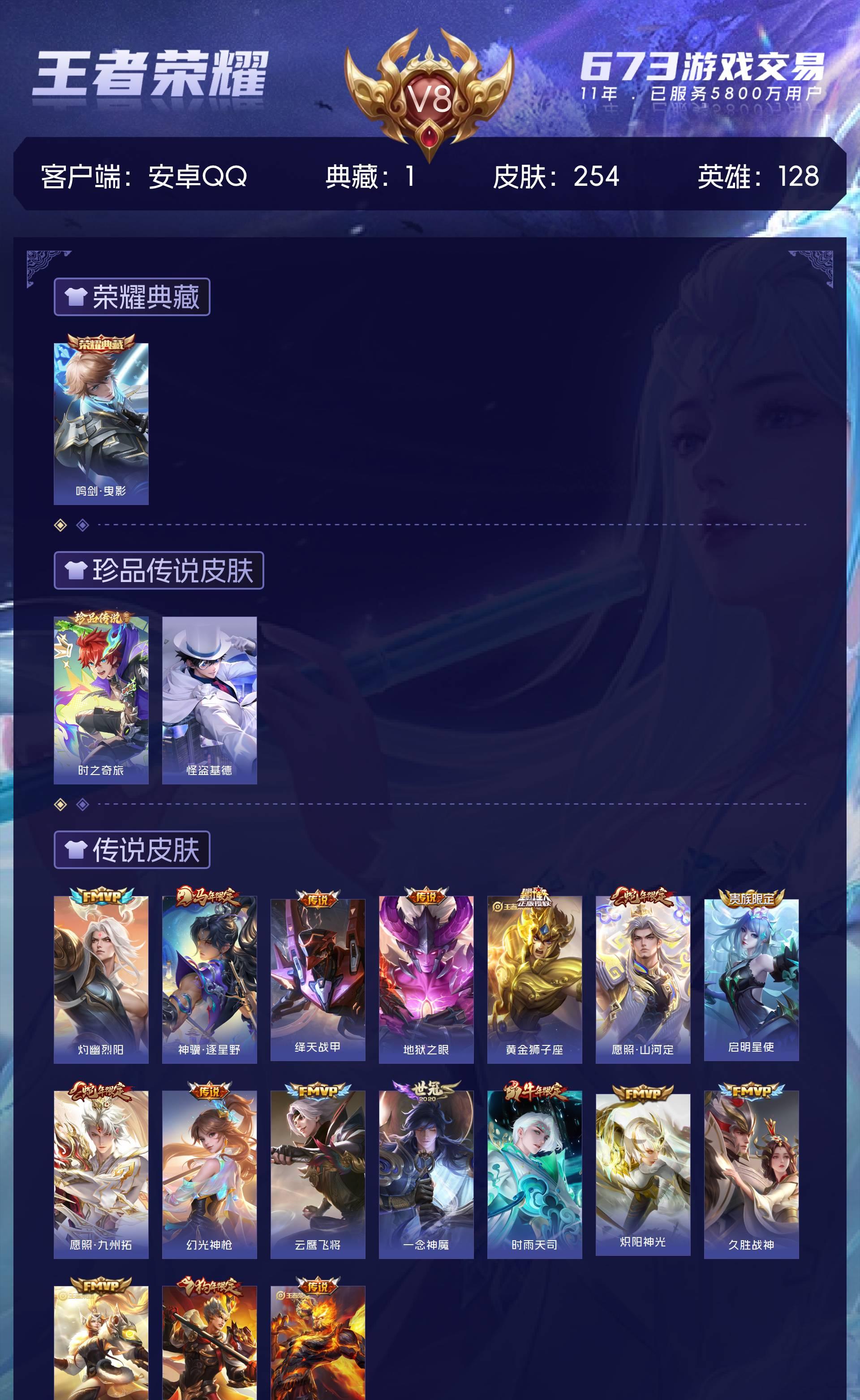 V8 皮肤254 英雄128 永恒钻石 荣耀典藏1 珍品传说2 传说18