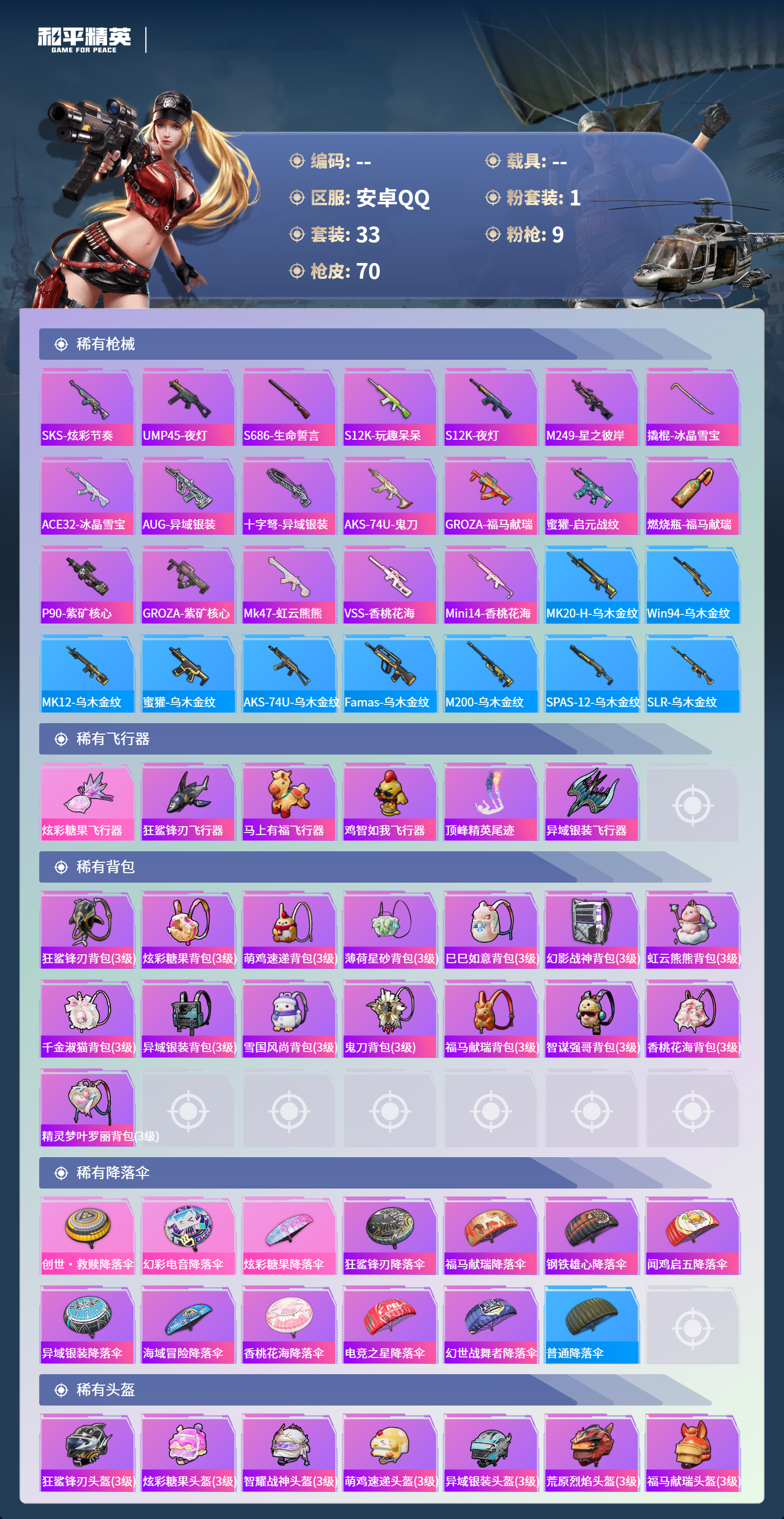 hs67721安卓手Q-0王牌印记-1粉装-9特效枪-19032热力值-33套装-70枪皮