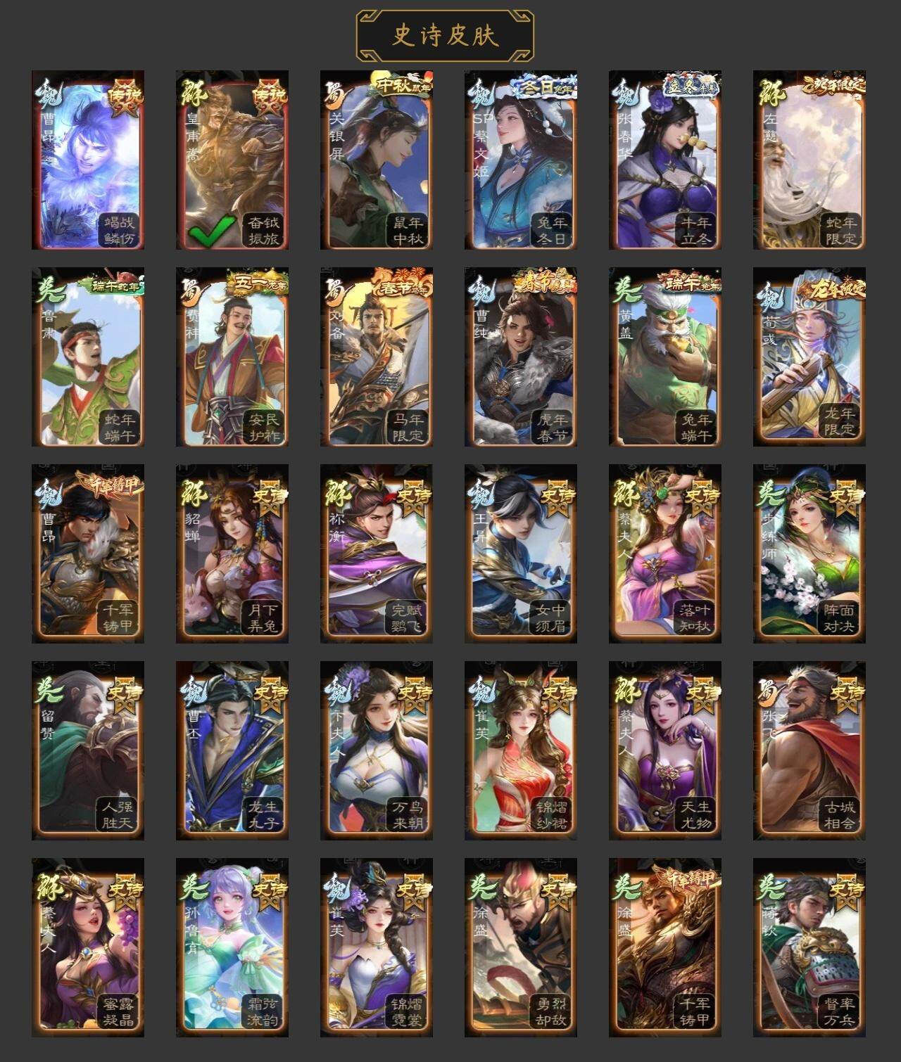 官阶:骠骑将军;VIP等级:VIP3;史诗武将数量:13;动态皮肤数量:12;