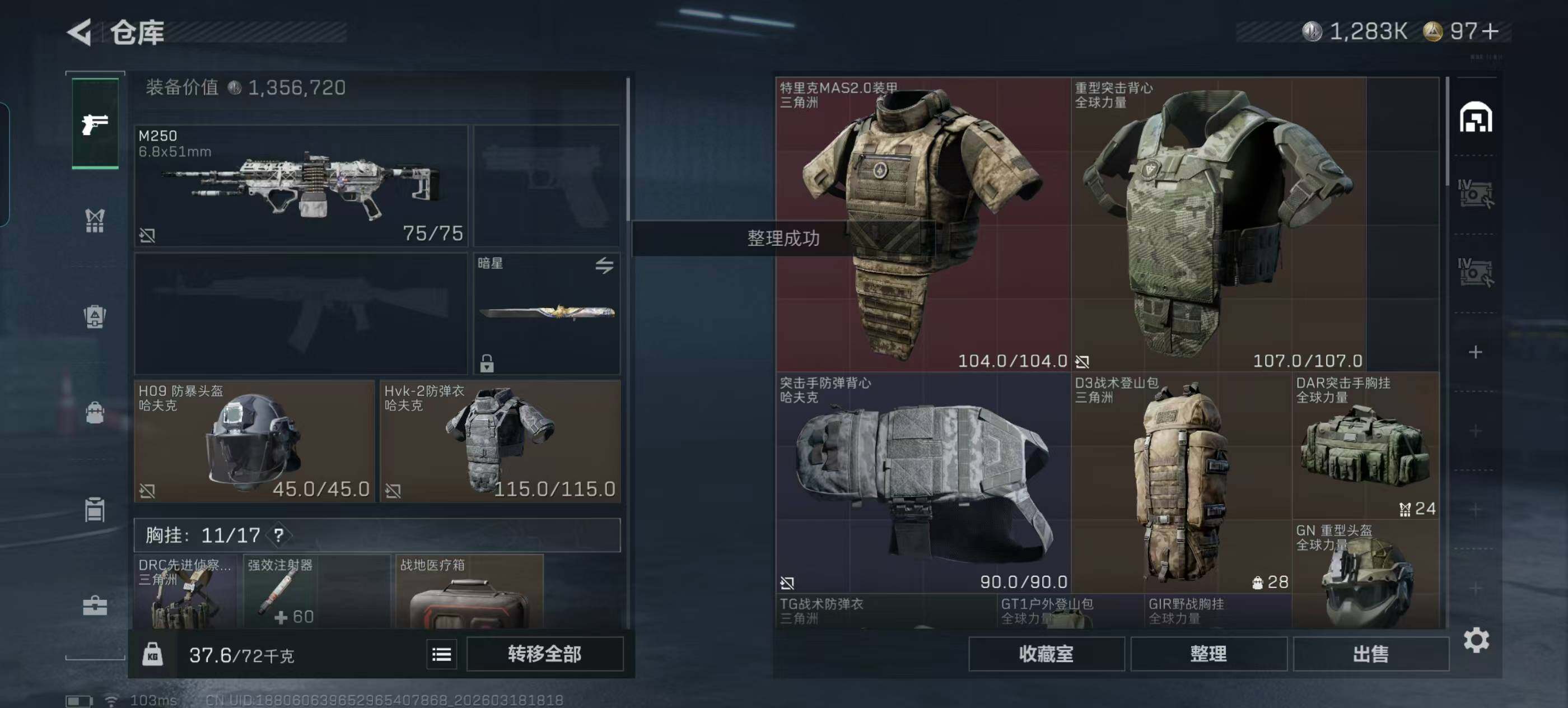 49m总资产-1283k哈夫币-60烽火等级-钻石-46战场