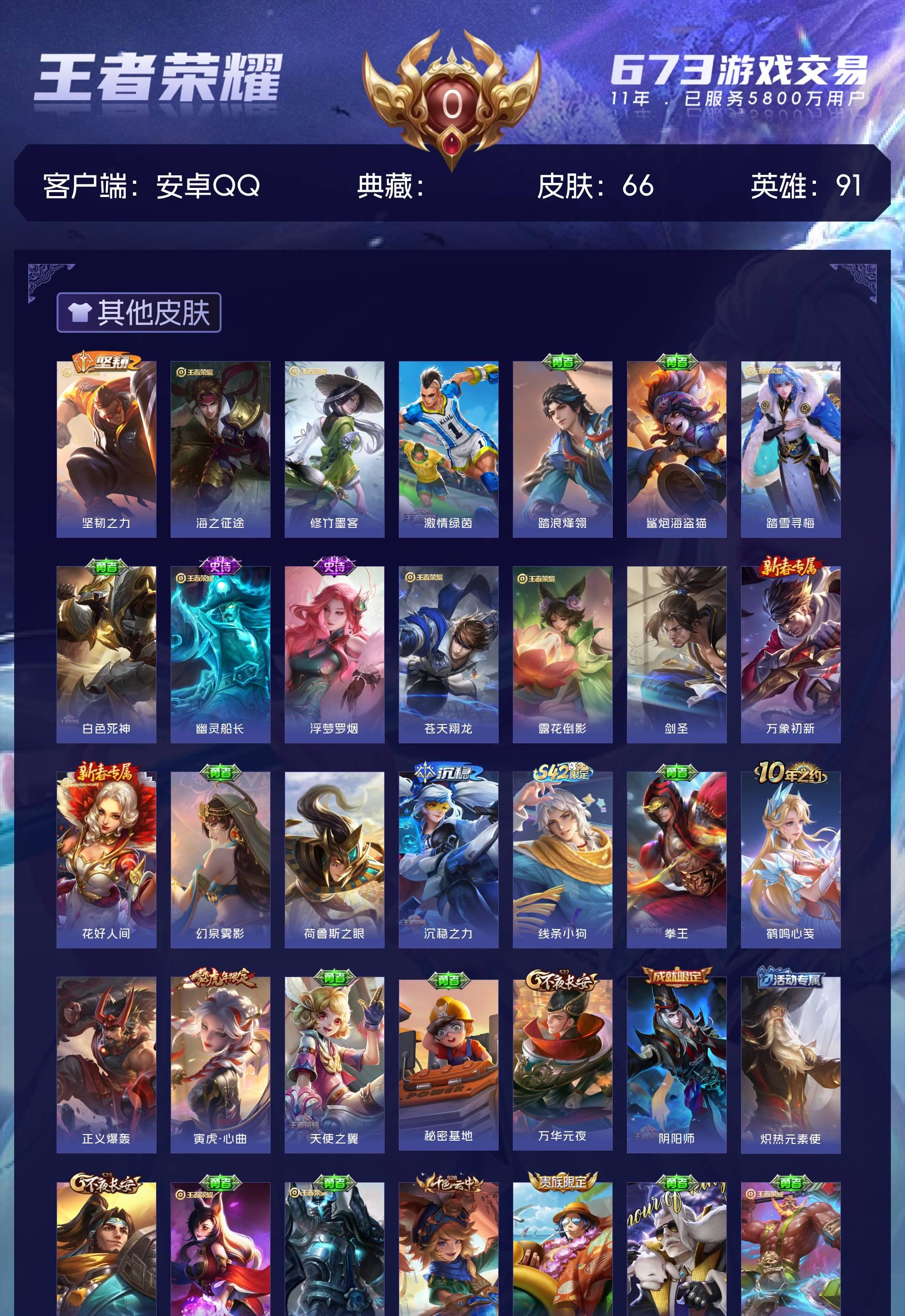 皮肤66 英雄91 至尊星耀