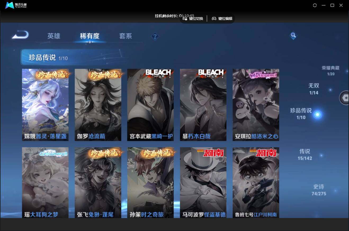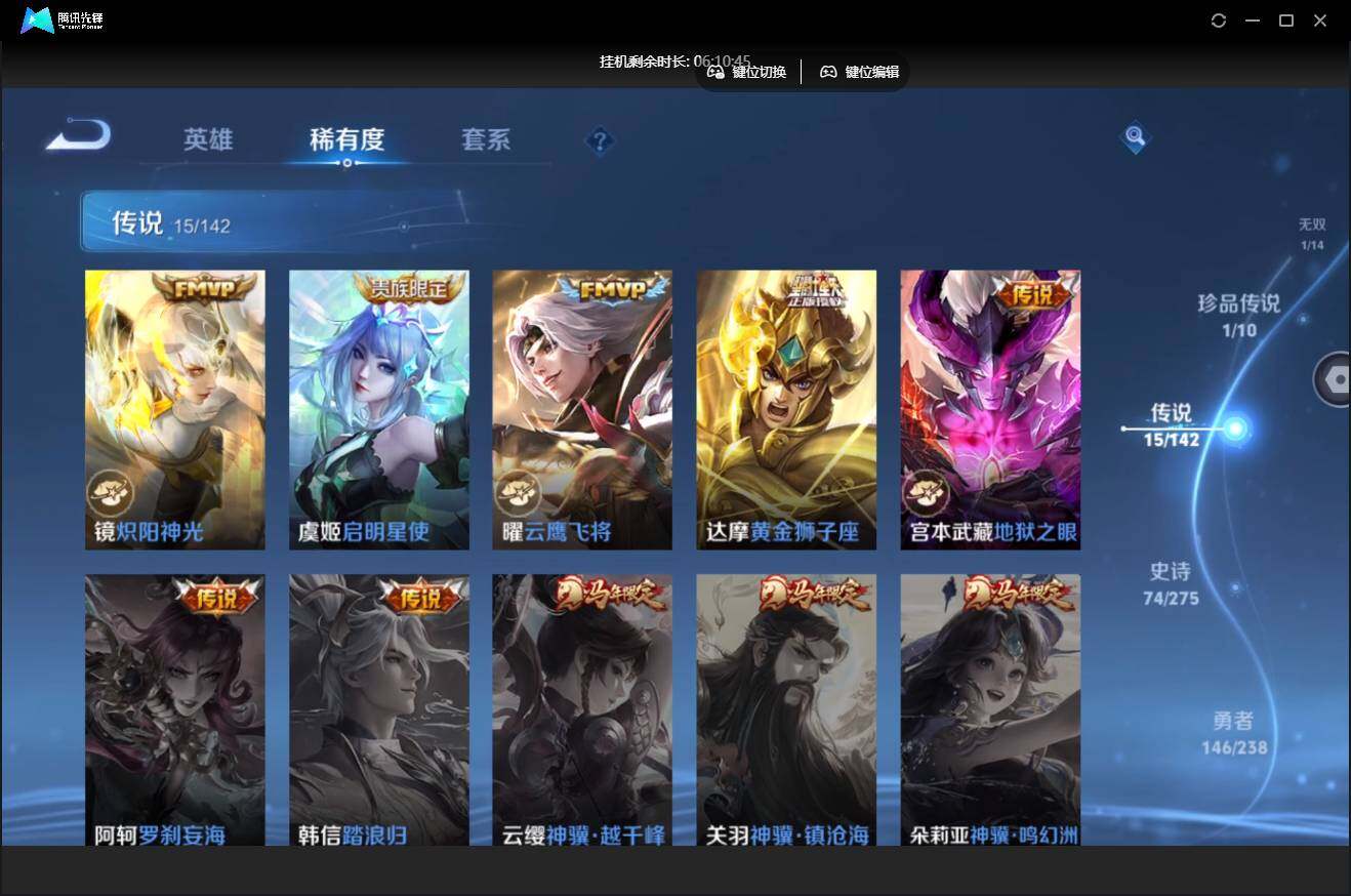 【W6278】【打野59段号-阿古朵国标-8个省标-3个万战】营地ID:【爆款臻稀皮肤:鸣剑·曳影-器灵螭龙剑-李逍遥-愿照山河定-愿照九州拓-启明星使-霜月吟-诗剑行-祥瑞亨通-星之鸣奏-神威-烈魂-幻光神枪-黄金狮子座-淬星耀世-云鹰飞将】不可二次-贵8-128英雄-316皮肤-1典藏-1无双-1珍品-1星元-15传说-限定-天幕-9按键-贵族积分5.8w