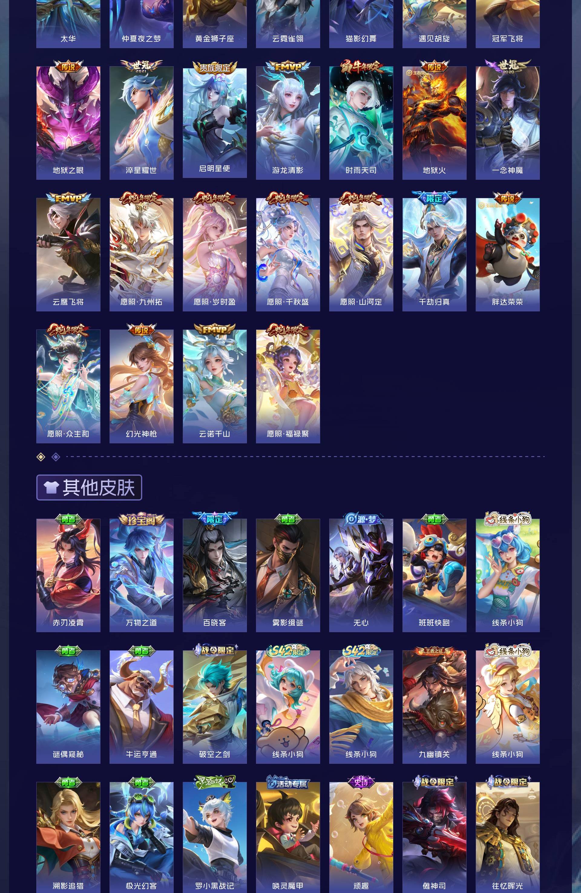 无双贵族 皮肤473 英雄128 最强王者 荣耀典藏10 无双皮肤6 珍品传说2 传说68