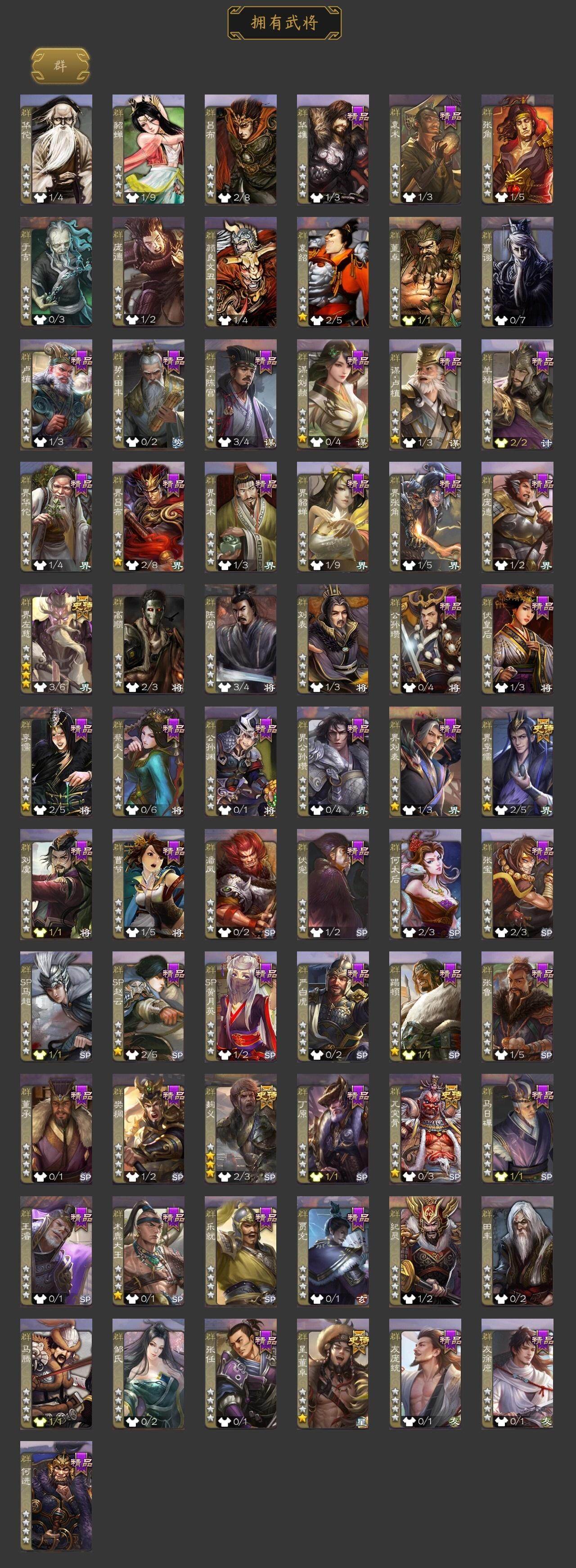 神吕布,神郭嘉,王粲,王元姬,界钟会,曹纯,戏志才,程昱,谋赵云,谯周,鲍三娘,谋关羽,吴景,孙皓,界徐盛,文鸯,麹义,界左慈,界李儒,星董卓,兀突骨,神吕蒙,势夏侯尚,SP关羽,SP