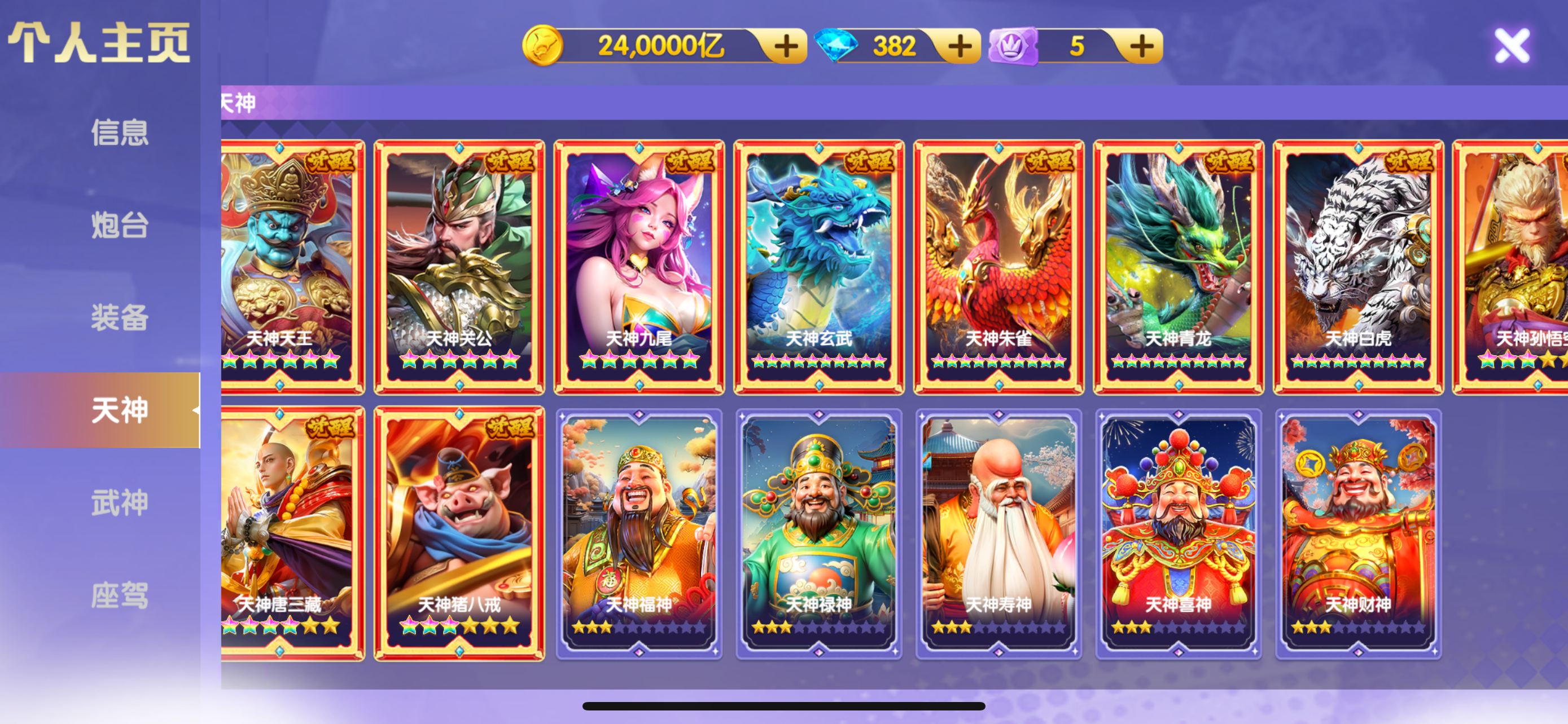 鱼乐达人高配号,17号官方Q,干过一堆高级号!7000多加成,羁绊6套(含2套绝版),全座驾8阶越野返还,女武神3个全9星,天神武神全满觉醒,下鱼各种乘2乘3。账号秒换绑。