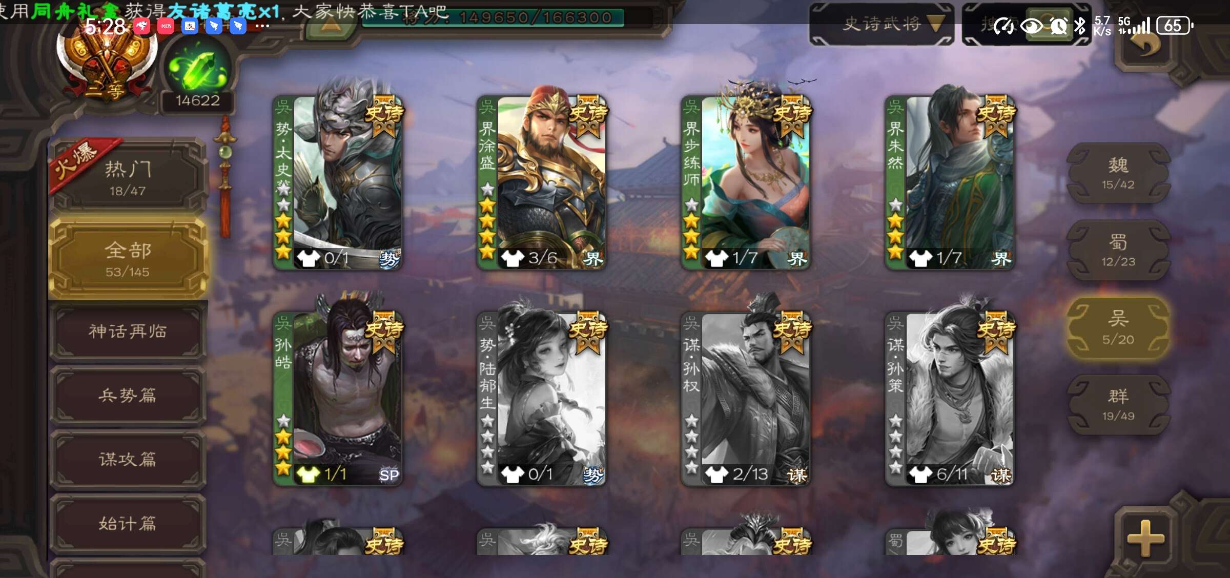 史诗武将数量: