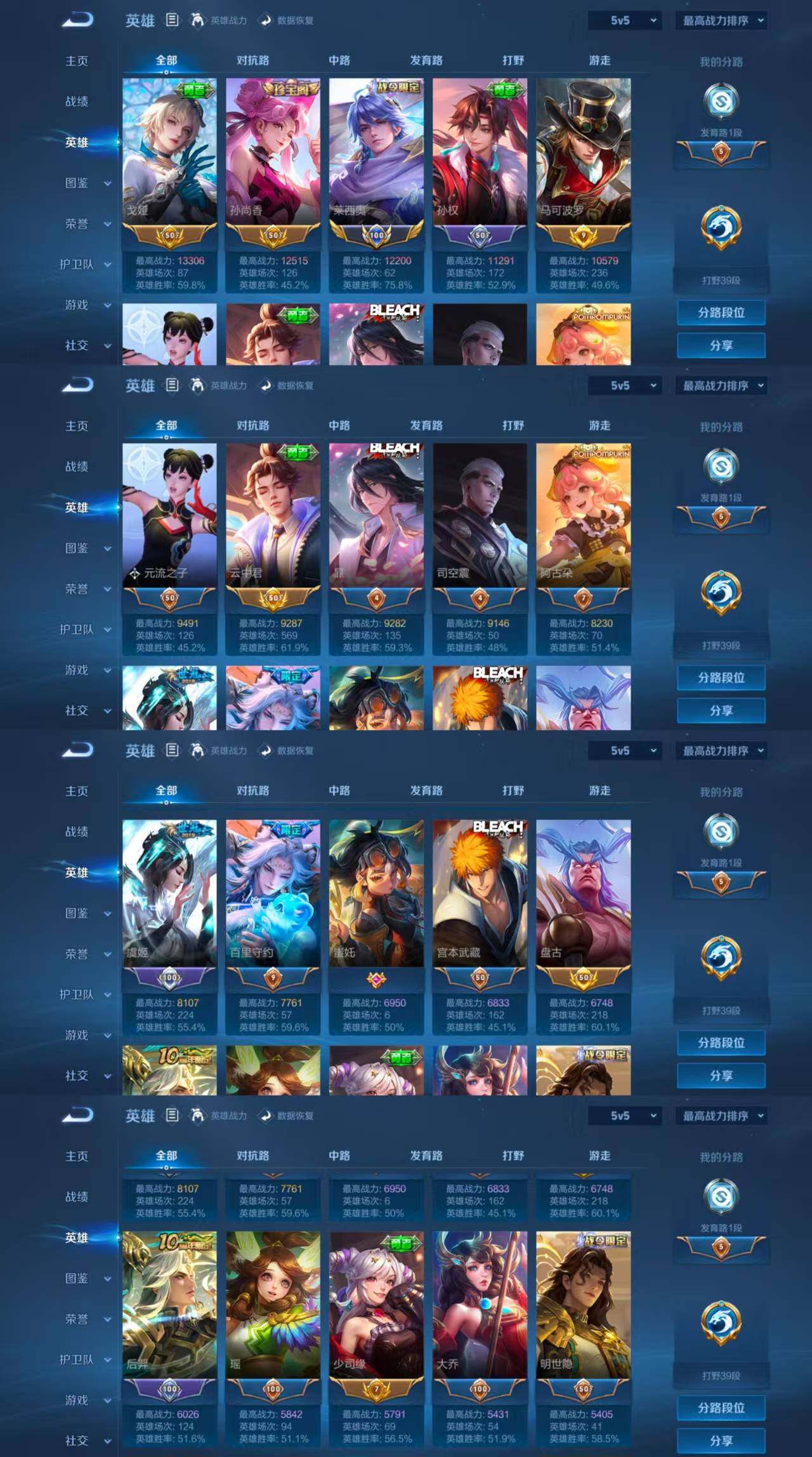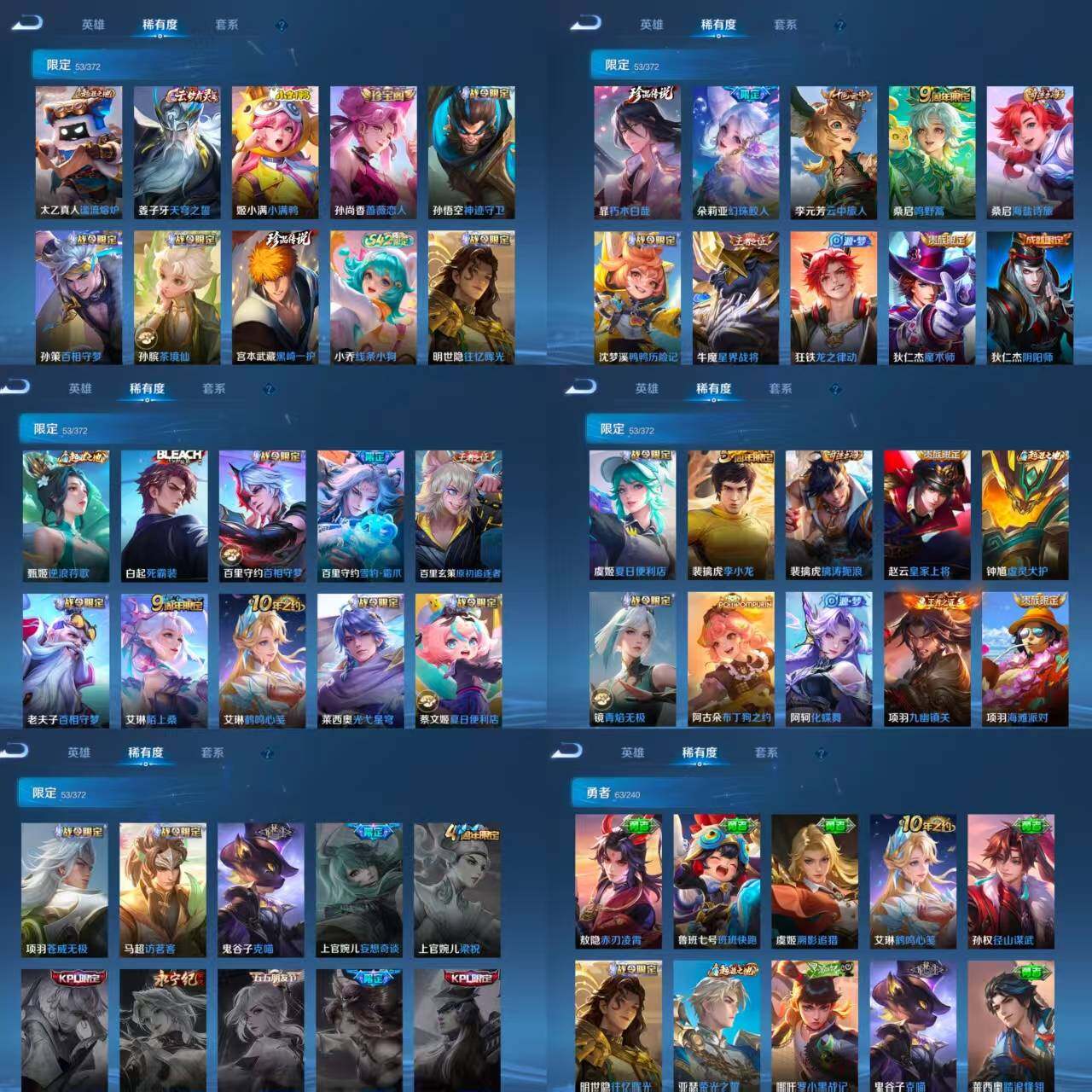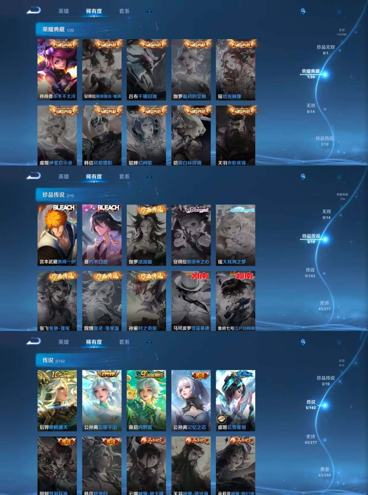 ae97,女号,3小国标莱西奥苍李信,9金标艾琳公孙离敖隐戈娅孙尚香马可云中君盘古少司缘,1典藏5传说2珍品传说,杀手不太冷黑崎一护朽木白哉云诺干山鸣野蒿记忆之芯云霓雀翎神树通天