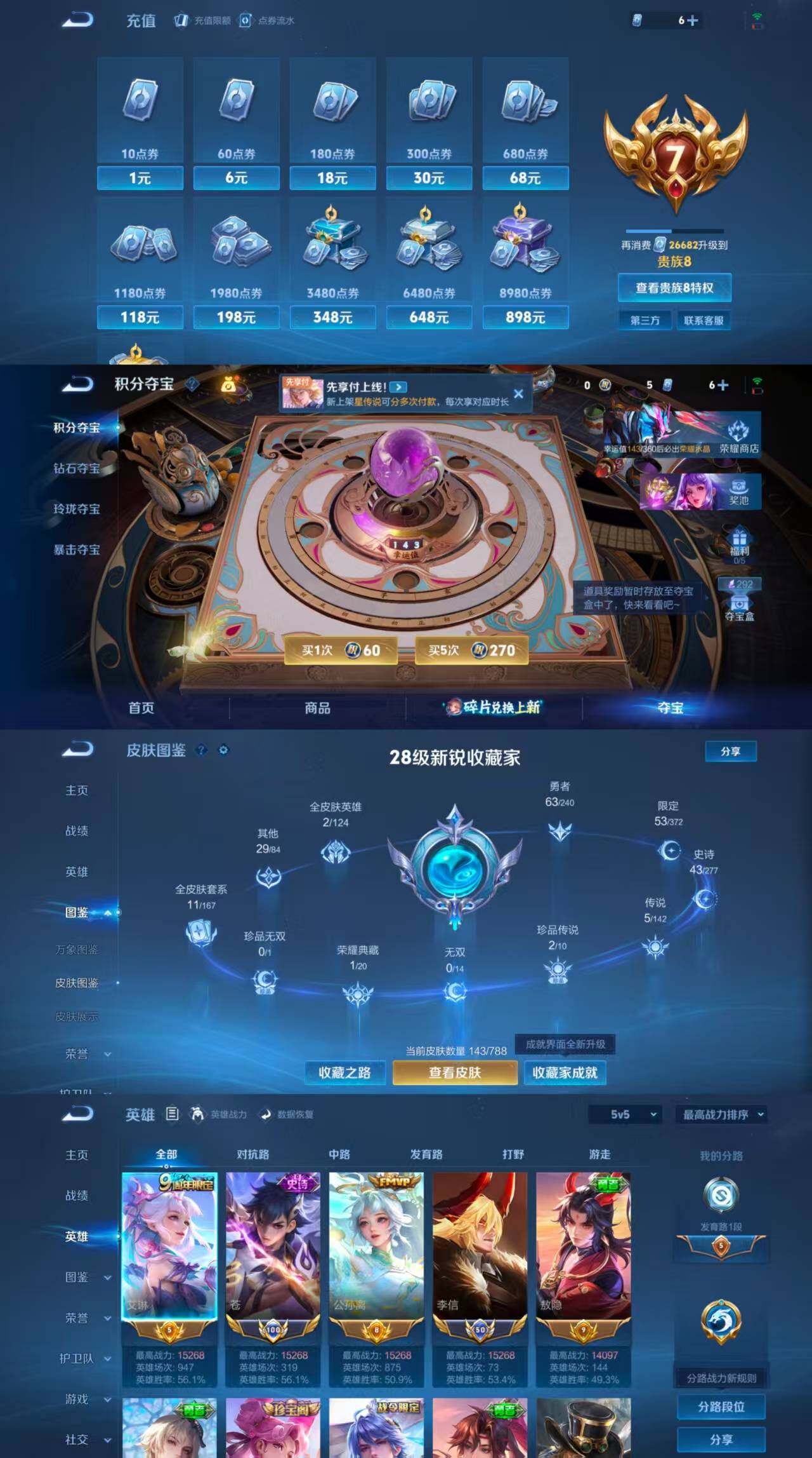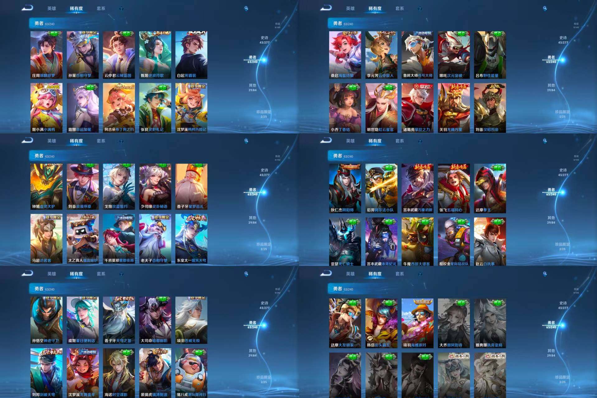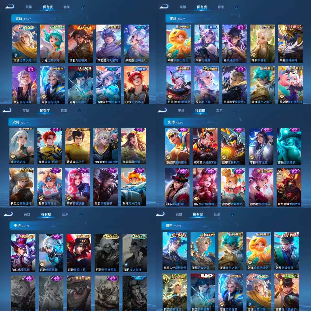 ae97,女号,3小国标莱西奥苍李信,9金标艾琳公孙离敖隐戈娅孙尚香马可云中君盘古少司缘,1典藏5传说2珍品传说,杀手不太冷黑崎一护朽木白哉云诺干山鸣野蒿记忆之芯云霓雀翎神树通天