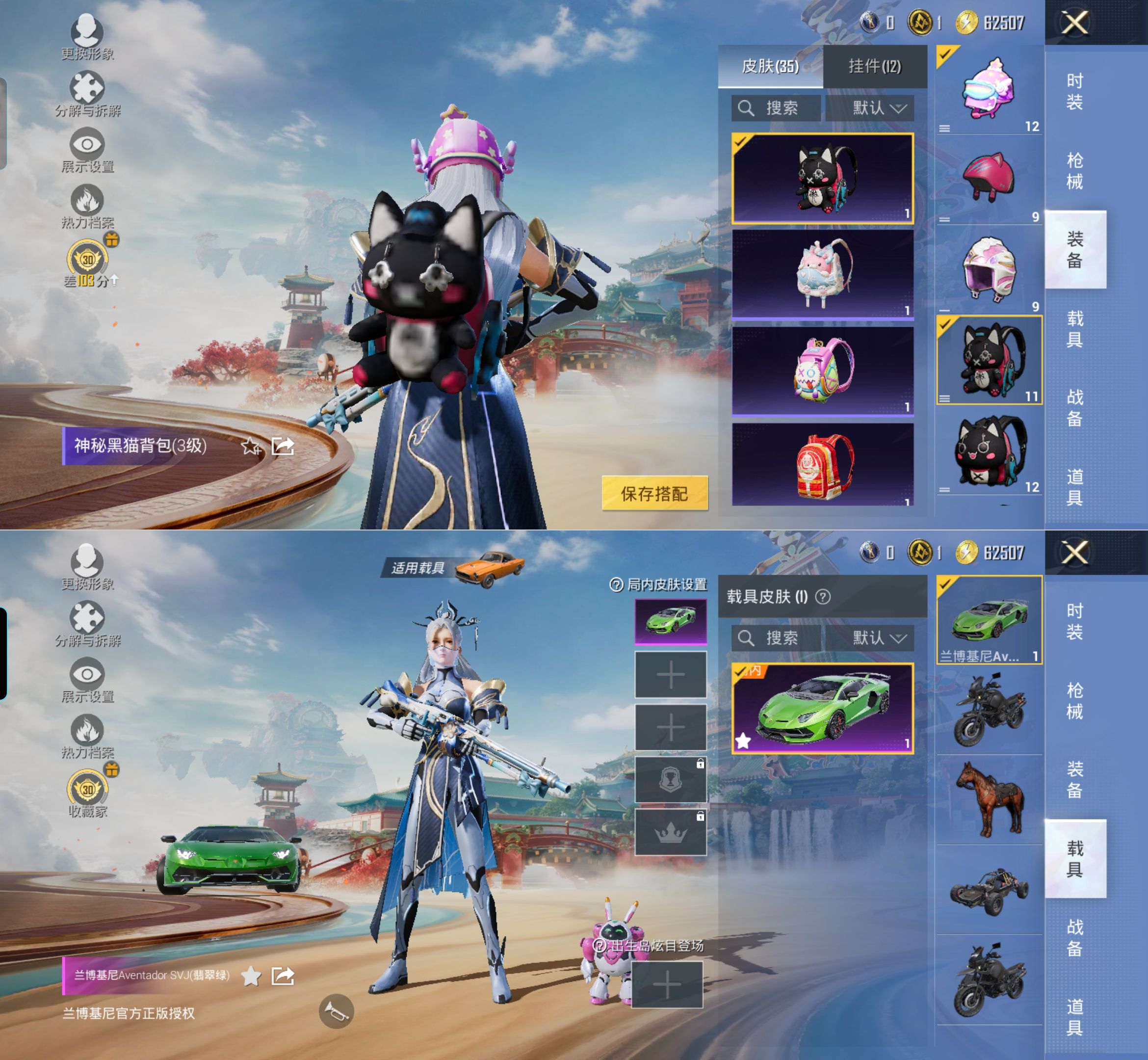 【女号1载具-5粉装-2特效枪黄伞悠悠,吟月归客,角色-洛天依,沙场疾风,蓝莓炮弹】安卓手Q-1载具-5粉装-2特效枪-37套装-43枪皮-1王牌印记-英勇黄金Ⅲ-20584热力值【1载具】兰博基尼Aventador SVJ(翡翠绿)【5粉装】黄伞悠悠,吟月归客,角色-洛天依,沙场疾风,蓝莓炮弹【2特效枪】MG3-洛神天依[4级],M249-蓝莓炮弹[4级]【1飞行器】火焰蝠人飞行服【1背包】神秘
