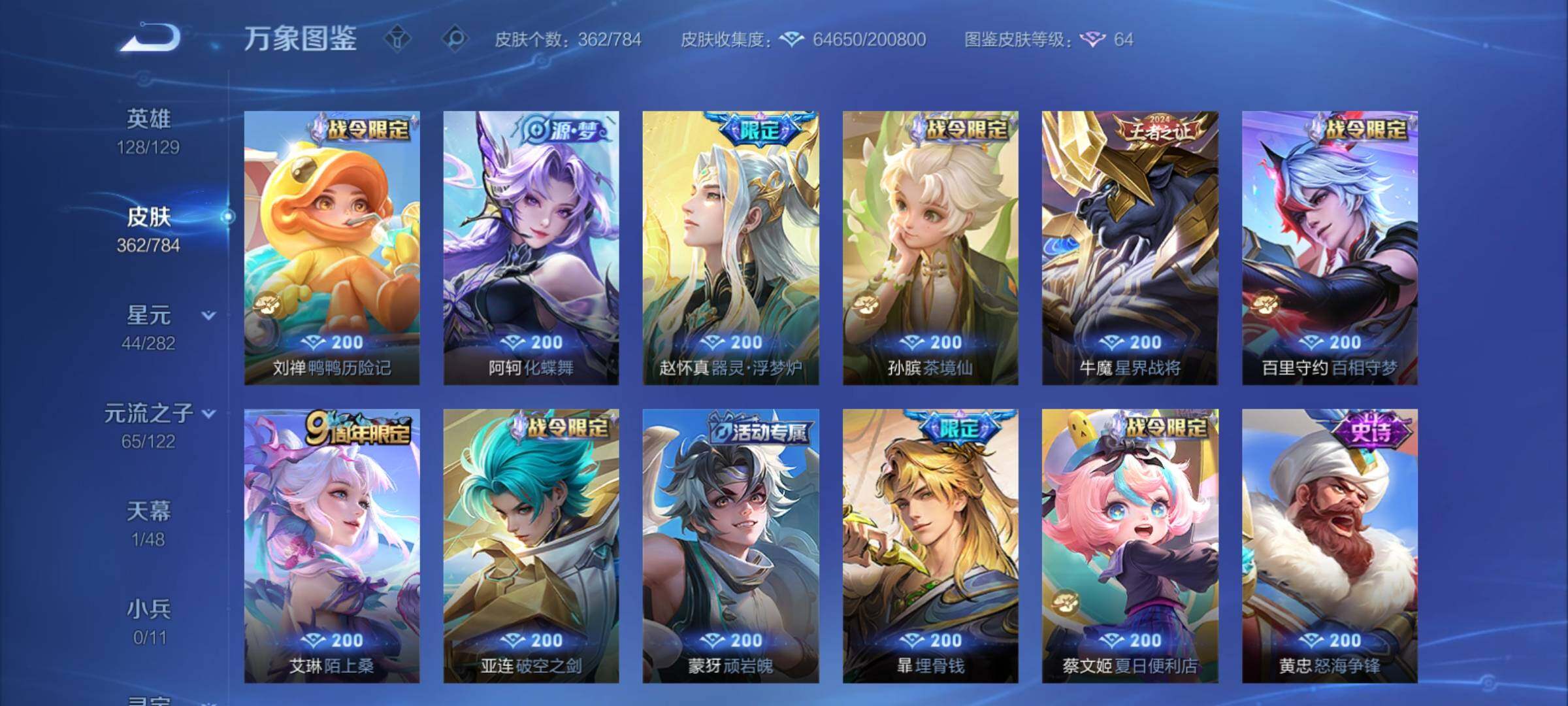 可换绑【精品v9号·李信韩信无双·四典藏·蛇年澜司空震女娲·霜北刀·琥珀纪元·