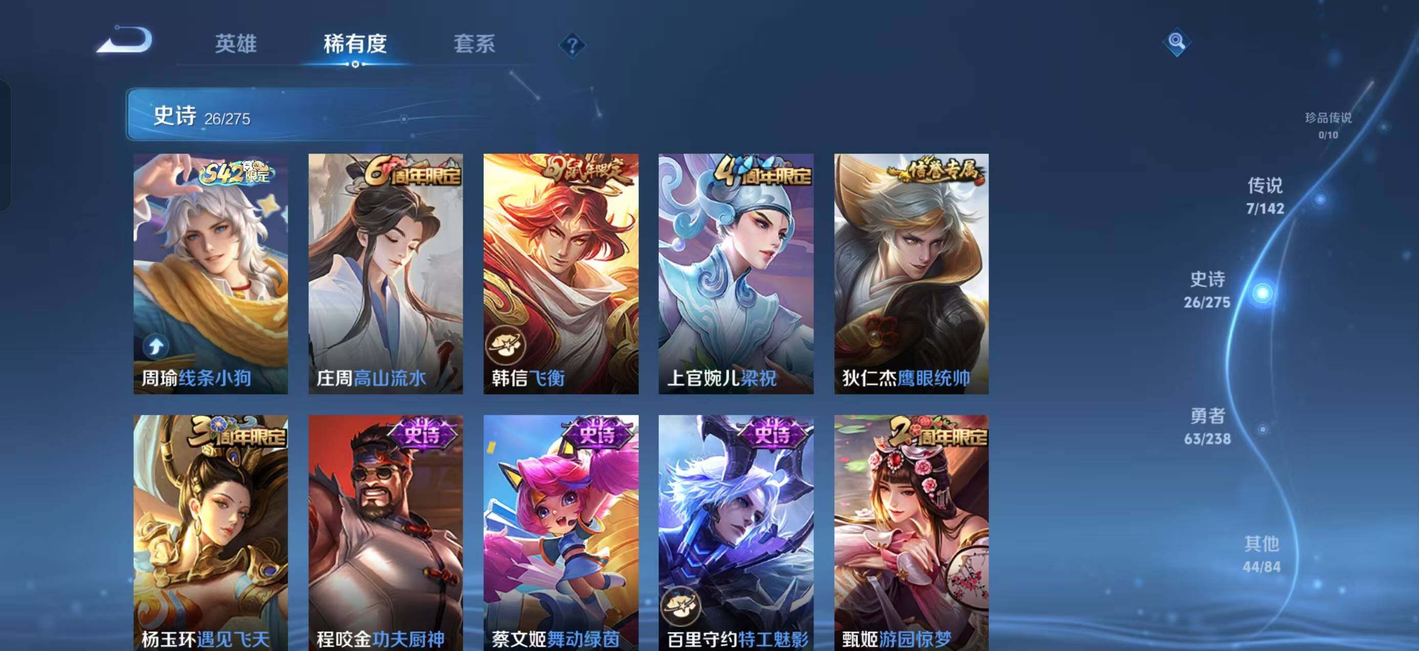 安卓Q-V7-最强王者段位-125英雄-141皮肤-1典藏皮肤-7传说-25史诗