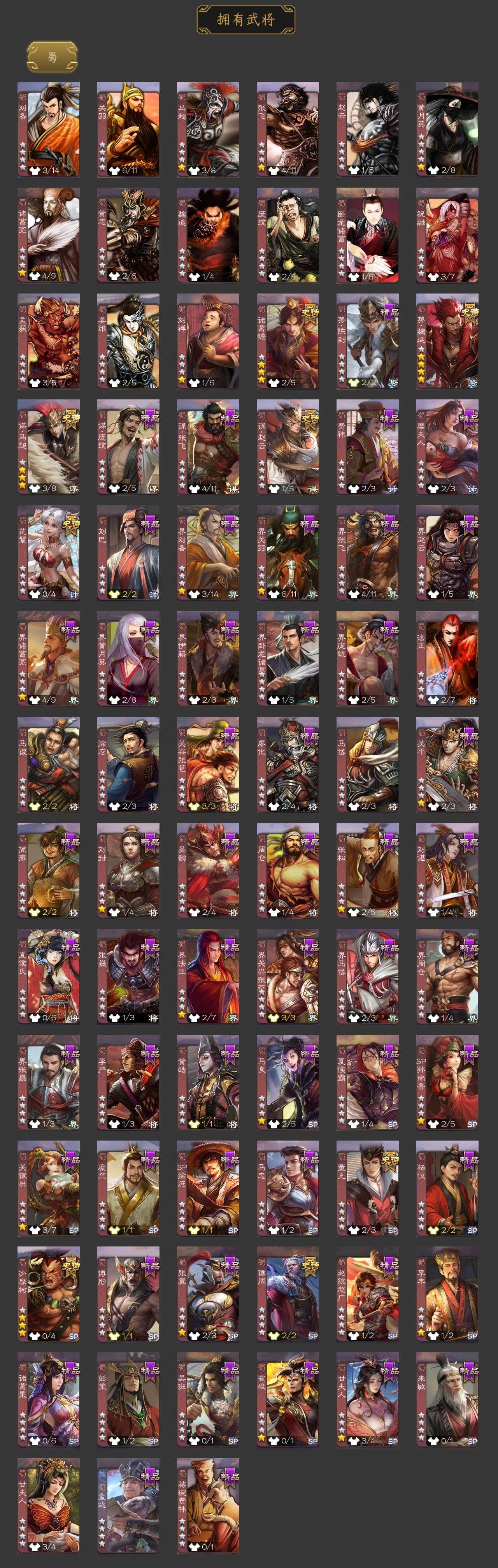 神吕布,神赵云,神陆逊,神刘备,神郭嘉,星周不疑,王元姬,王凌,界钟会,嵇康,曹婴,曹纯,戏志才,程昱,谋赵云,谋马超,诸葛瞻,沙摩柯,谯周,花鬘,董允,势魏延,周处,骆统,左慈,