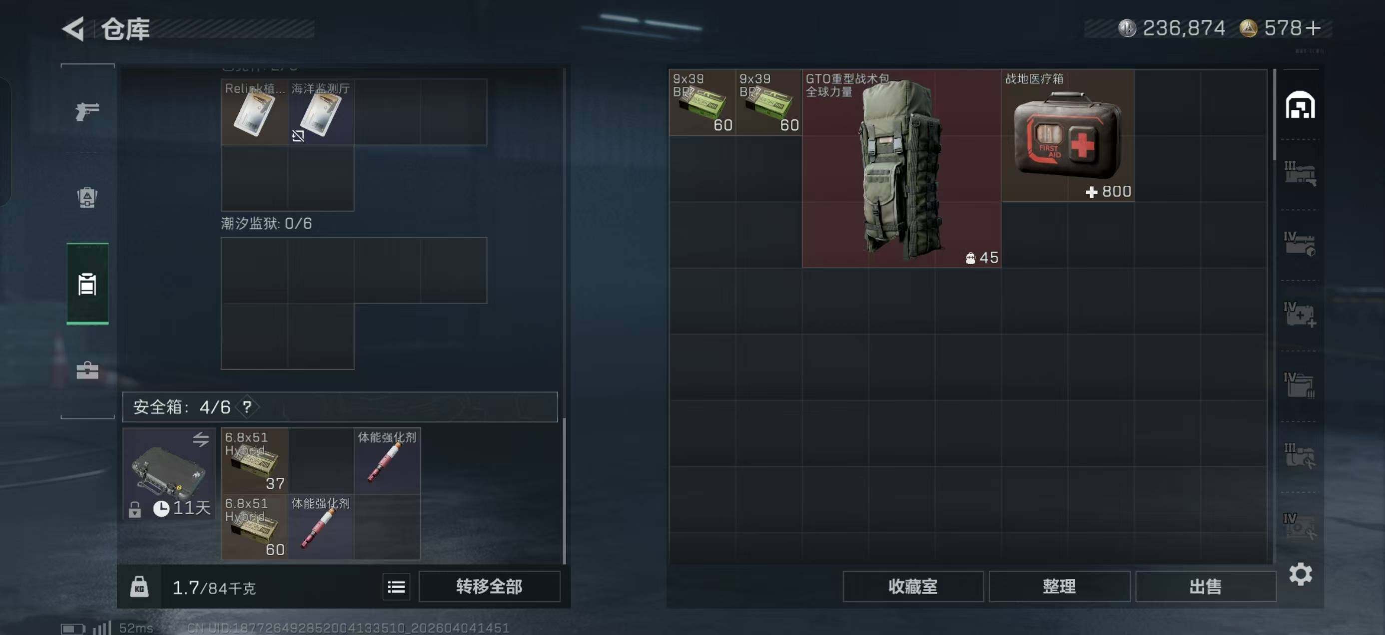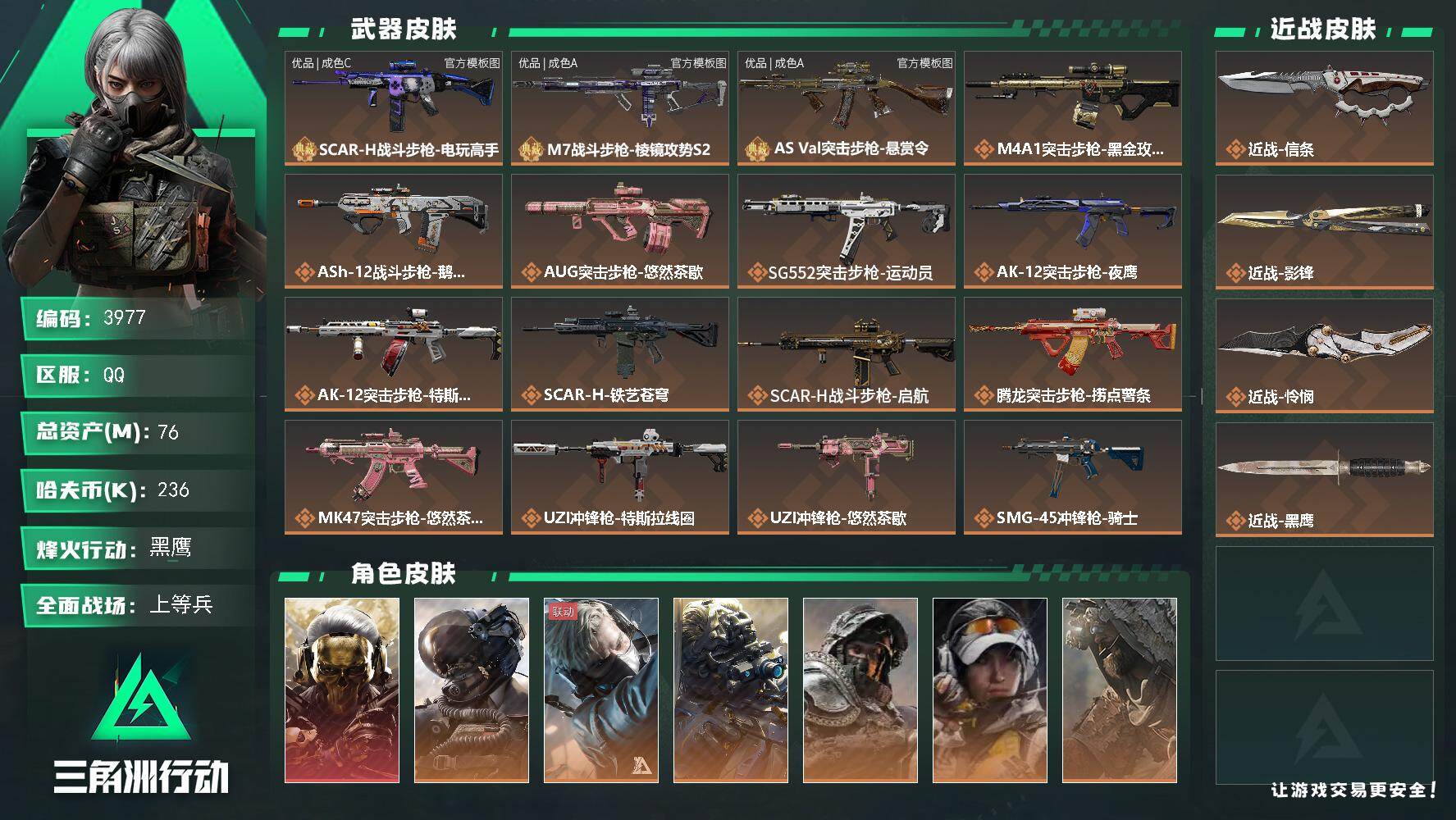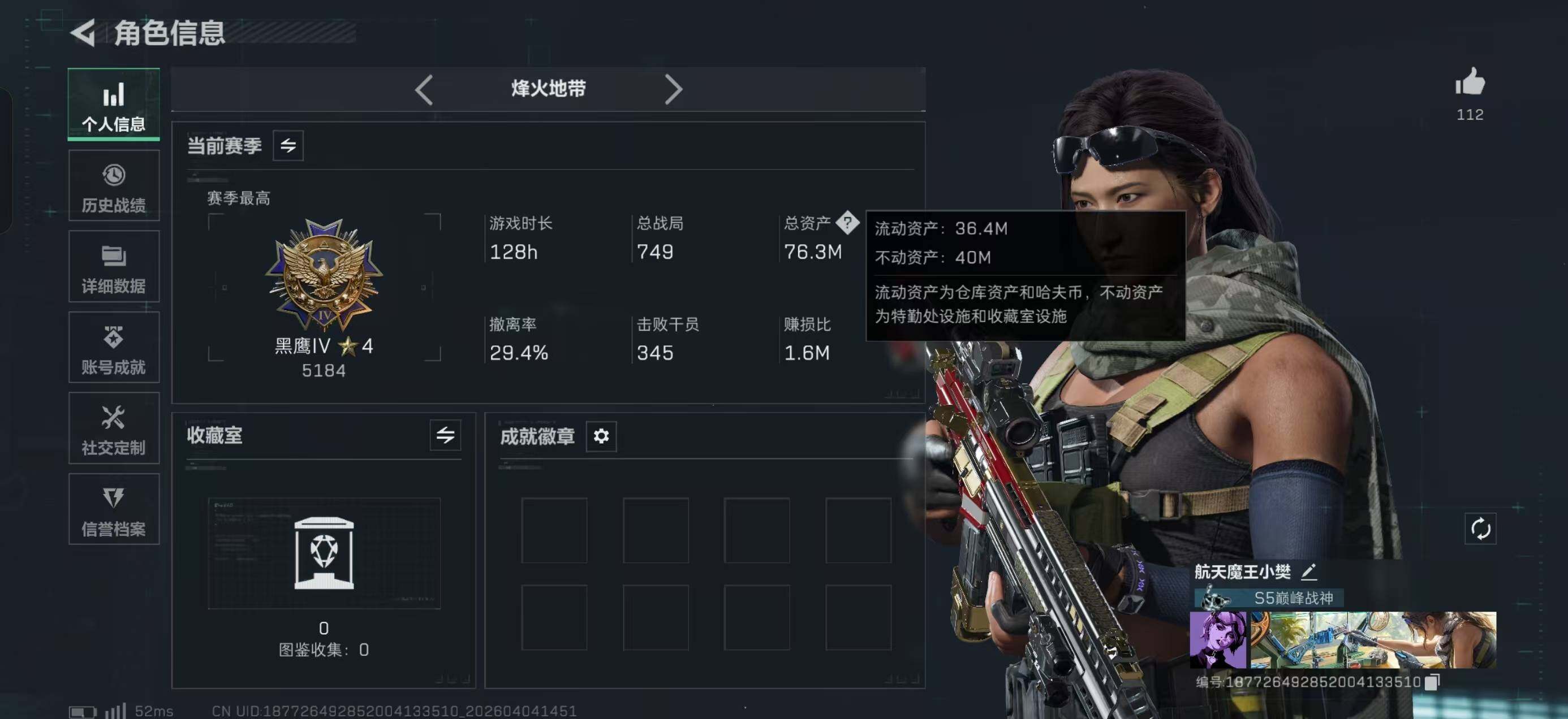 76m总资产-236k哈夫币-60烽火等级-黑鹰-16战场等级-上等兵