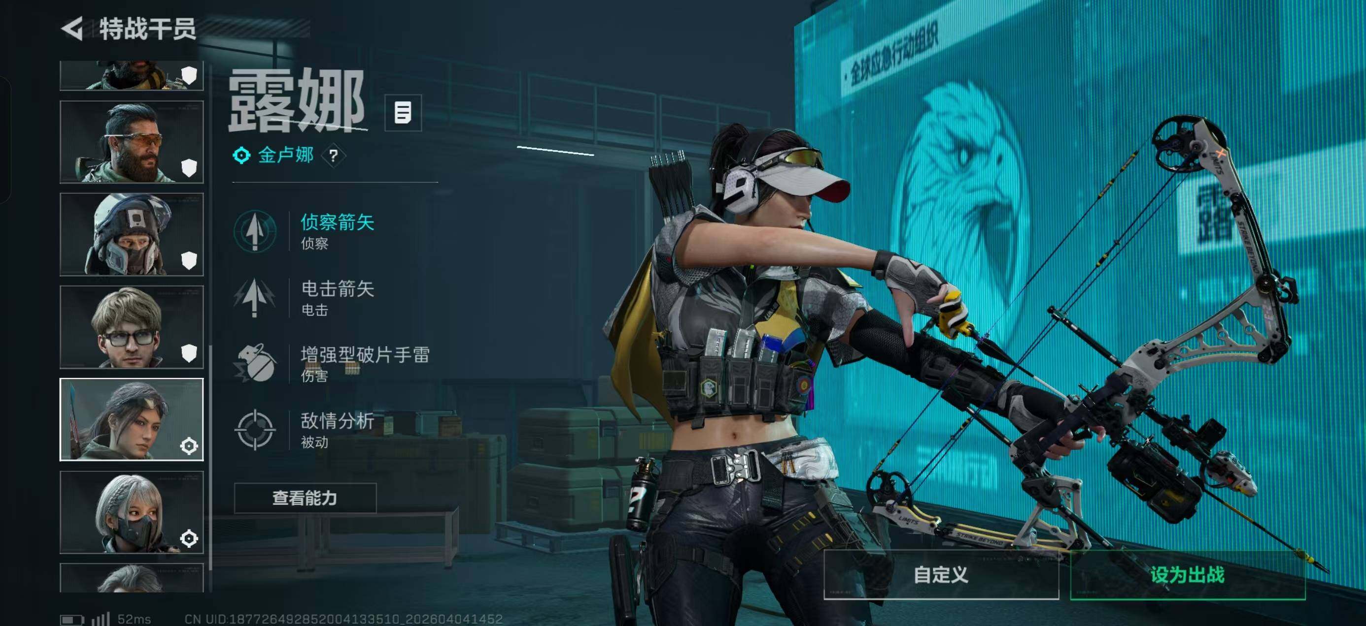【干员外观】:红狼-蚀金玫瑰,威龙-壮志凌云,蜂医-送葬人·无题密令,无名-夜鹰,深蓝-不破誓约,露娜-金牌射手,乌鲁鲁-荒原猎手