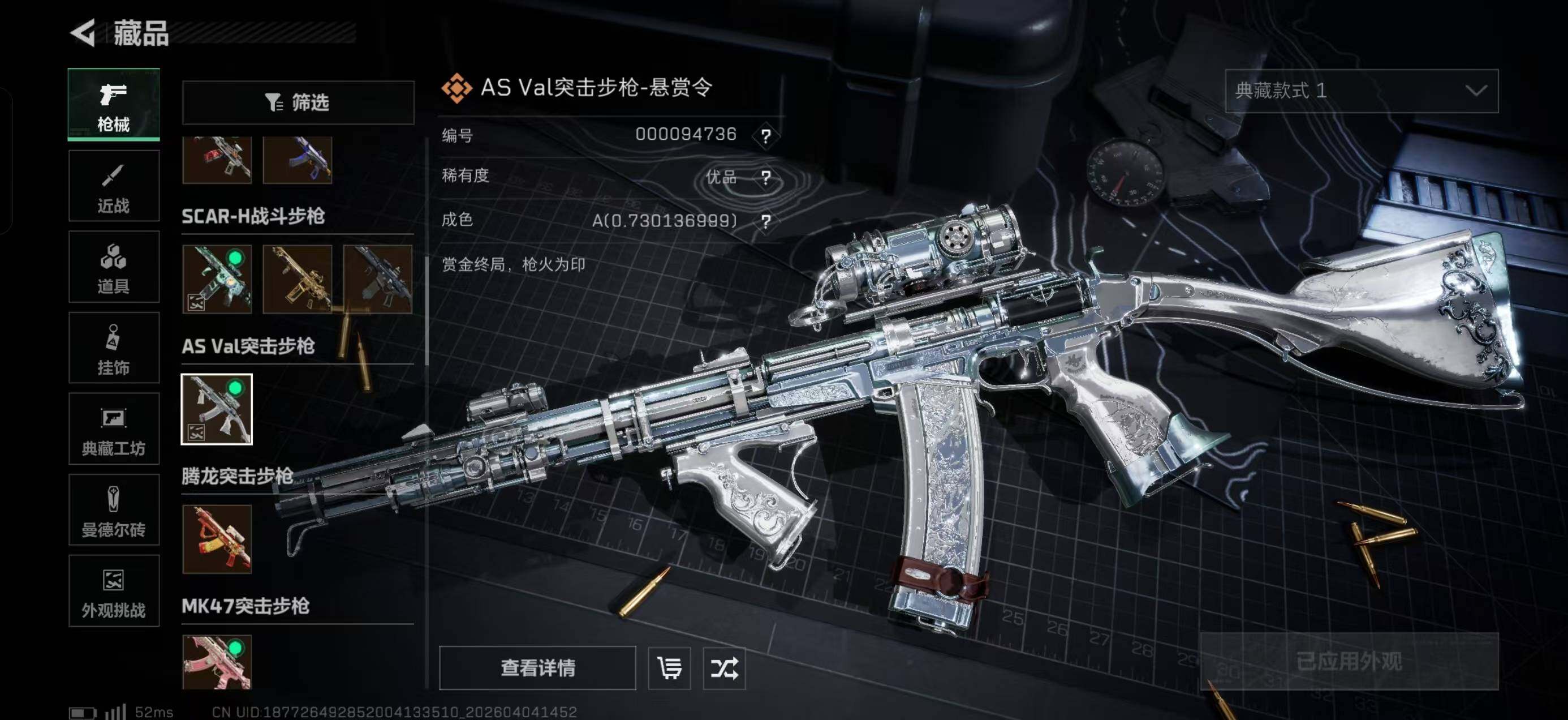 【典藏外观】:SCAR-H战斗步枪-电玩高手,M7战斗步枪-棱镜攻势S2*2,AS Val突击步枪-悬赏令
