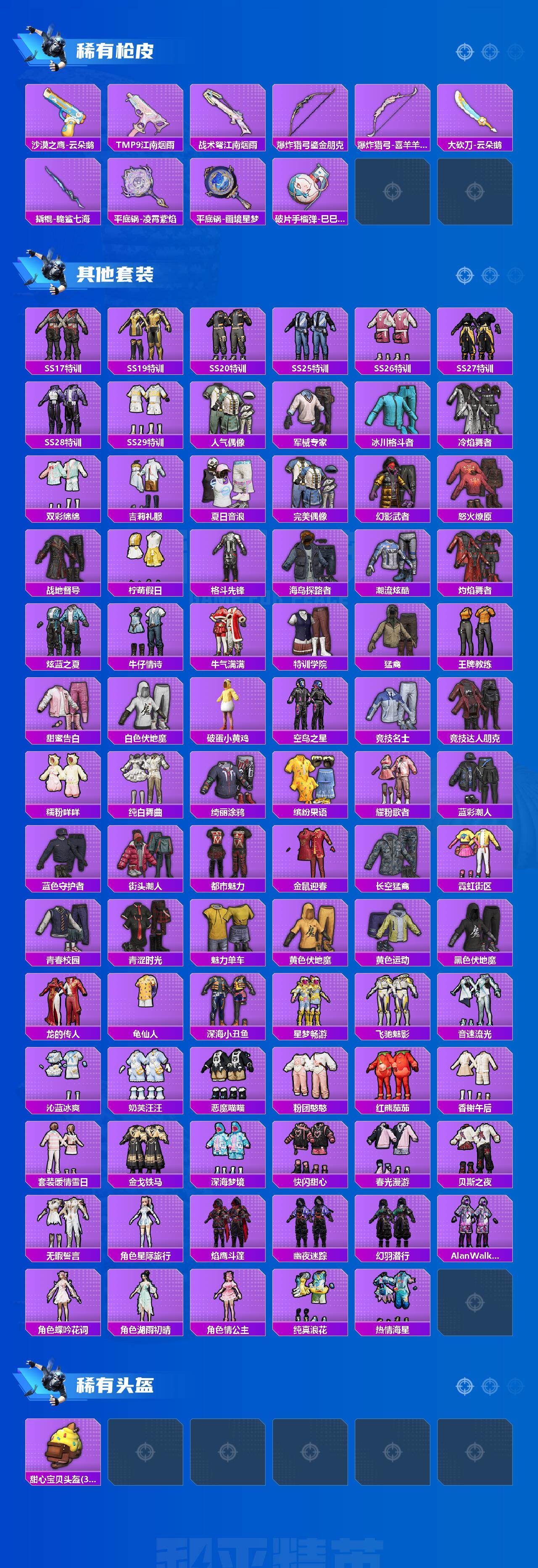 【粉色套装】:粉装-馨动时刻,粉装-甜梦小狐,粉装-冰川幽秘,角色-呆萌星弥,角色-小可学妹,粉装-蜜语绒猫,角色-狂花道·不知火舞,角色-千金淑猫,角色-晶梦幻蝶,粉装-幻彩电音,角色-异瞳寒姬,角色-罪夜