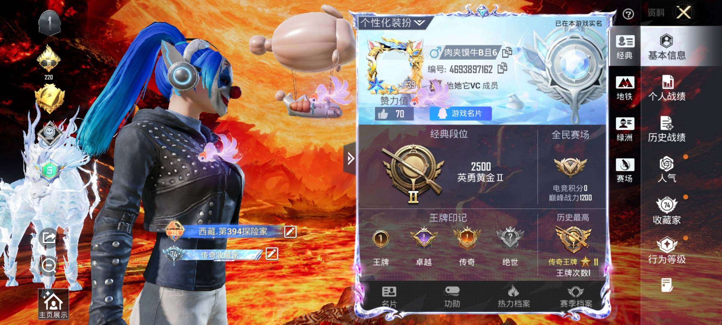 3神装-22粉装-12特效枪-4载具-8粉色飞行器-71150热力值-1王牌印记-146套装-189枪皮
