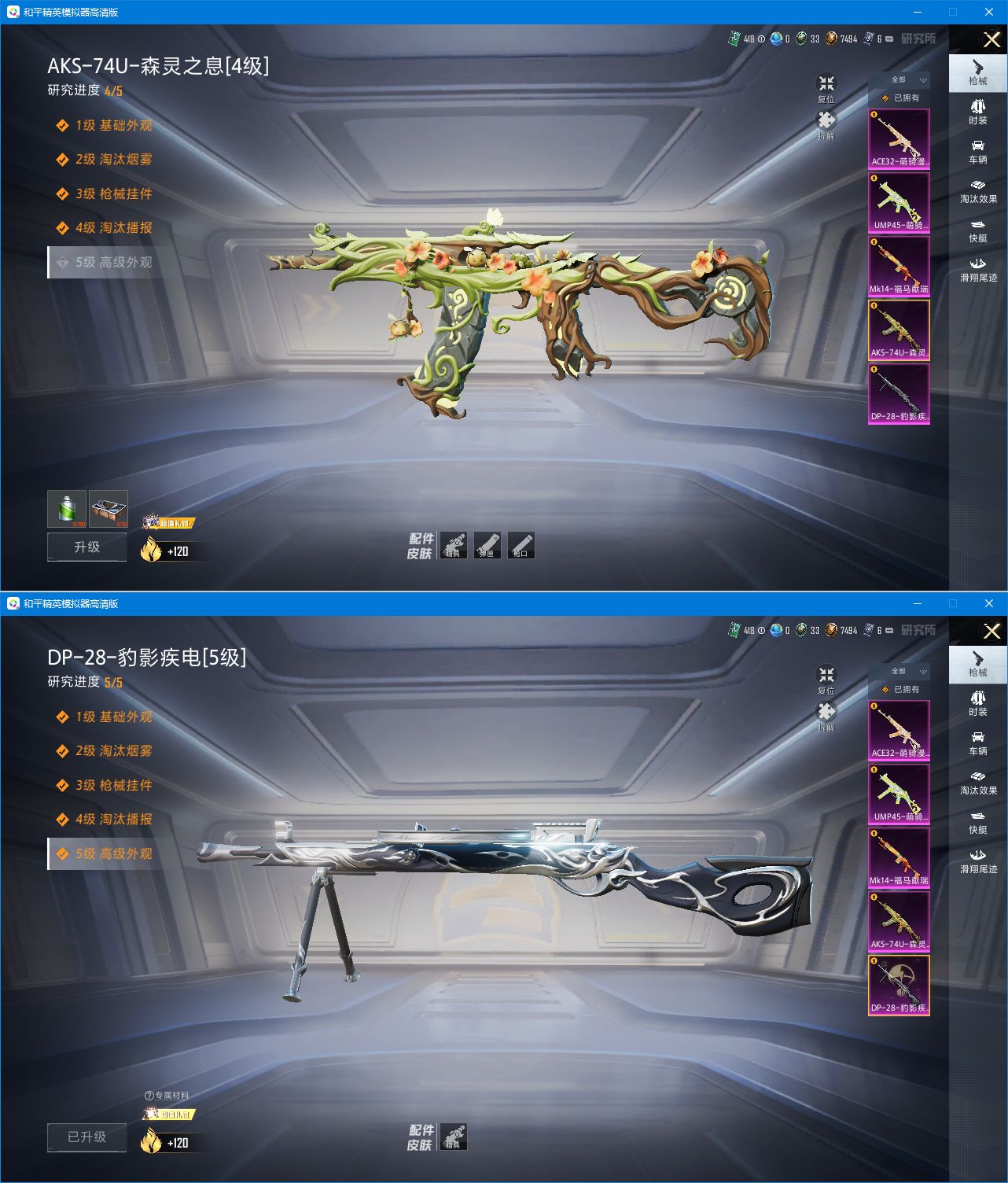 有二次【特价出售5特效枪】 安卓手Q-5特效枪-65套装-97枪皮-0王牌印记-坚韧铂金Ⅴ-25959热力值【5特效枪】Mk14-福马献瑞[5级],UMP45-萌骑冒险[4级],AKS-74U-森灵之息[4级],DP-28-豹影疾电[5级],ACE32-萌骑漫游[3级]【3飞行器】马上有福飞行器,异域银装飞行器,光之冒险尾迹【157其它衣服和枪皮】龙的传人,滨海厨神,黑色伏地魔,竞技名士,特战装甲