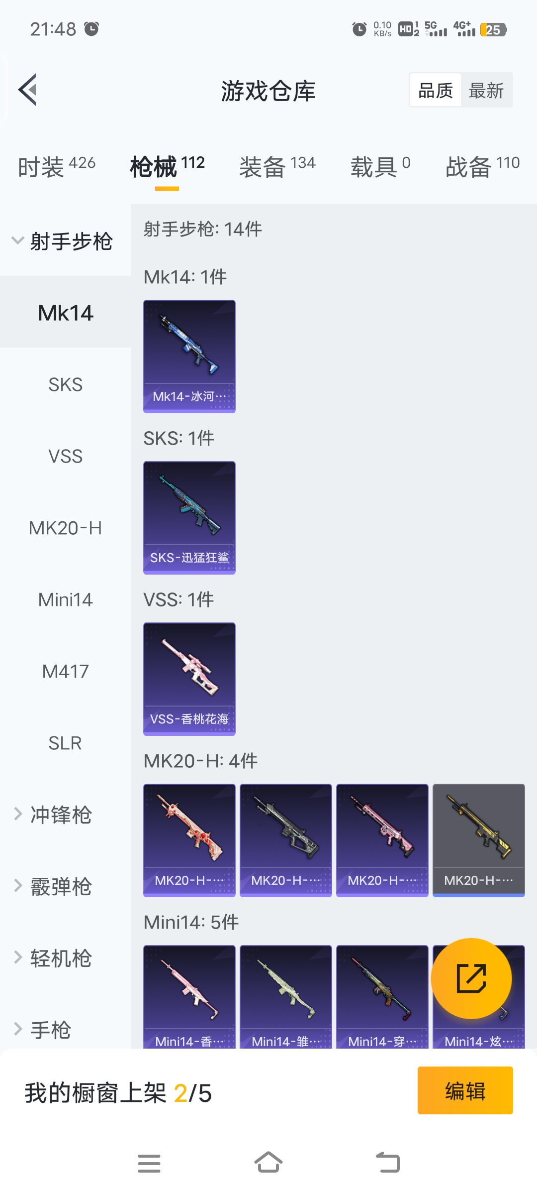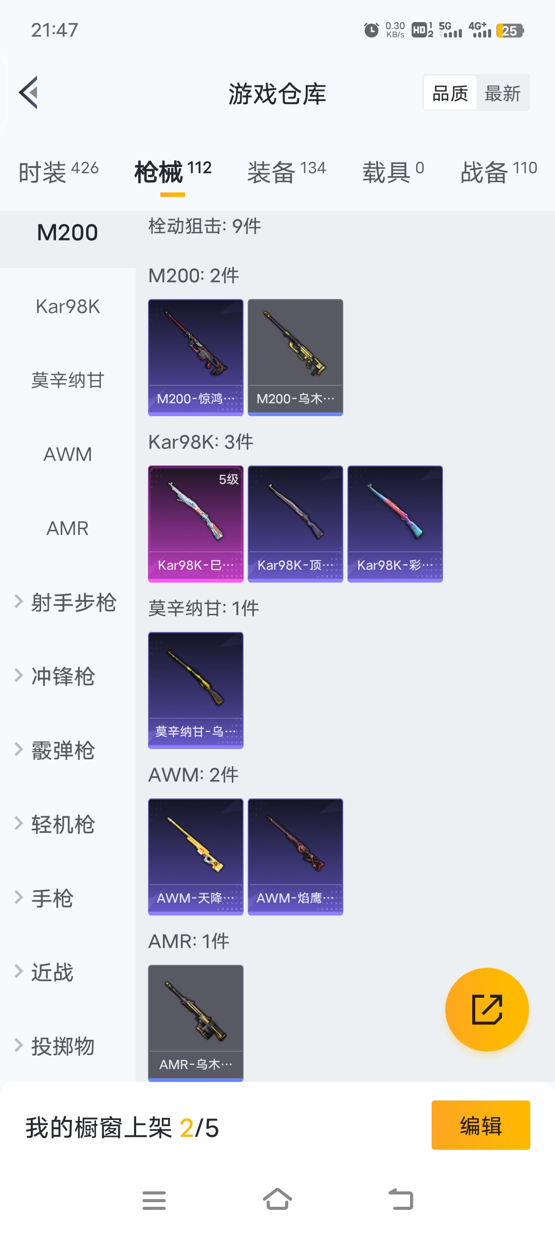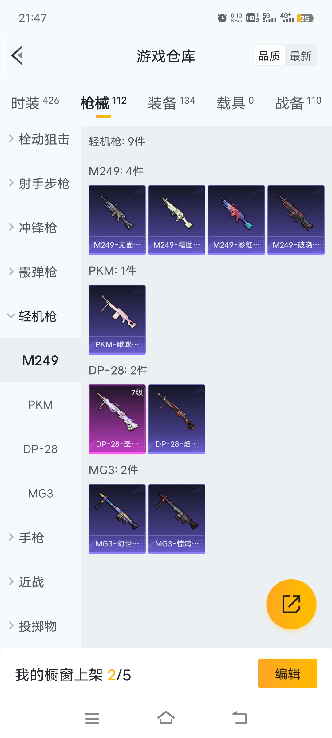 洛天依等3套粉装,5级akm,5级scar,5级m416,5级98k,7级DP28,12个印记