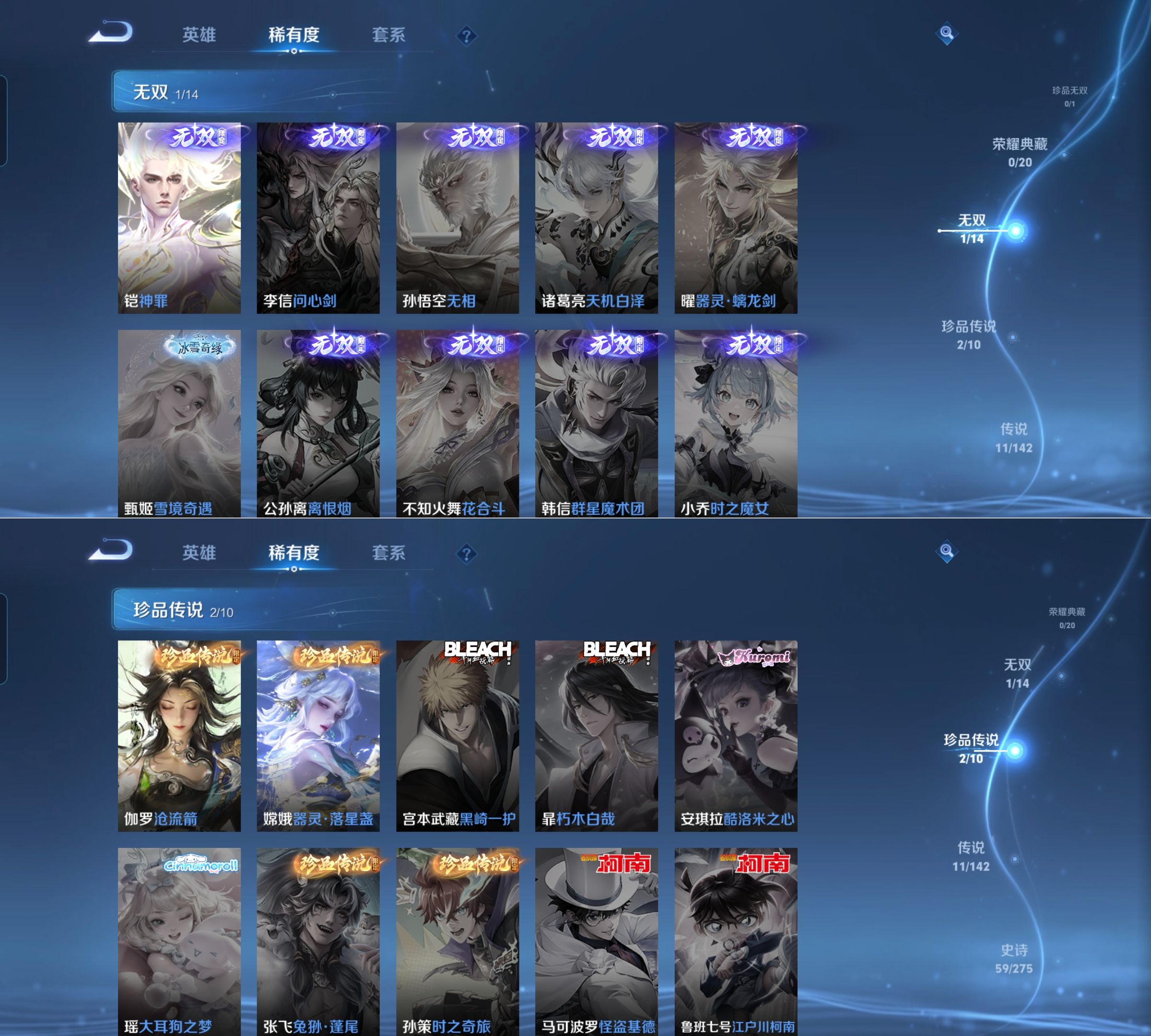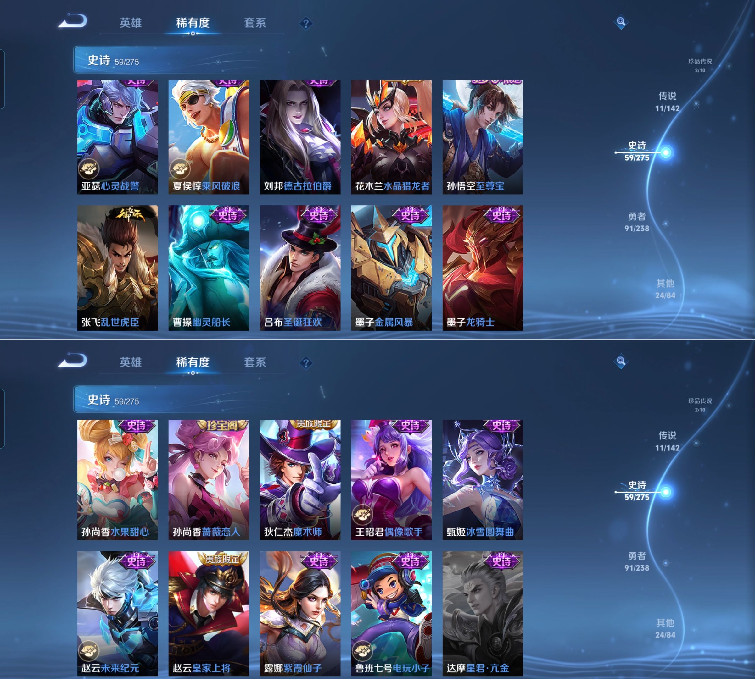 V7 125英雄 183皮肤 1无双 2珍品传说 11传说 1星传说 幽冥之眼