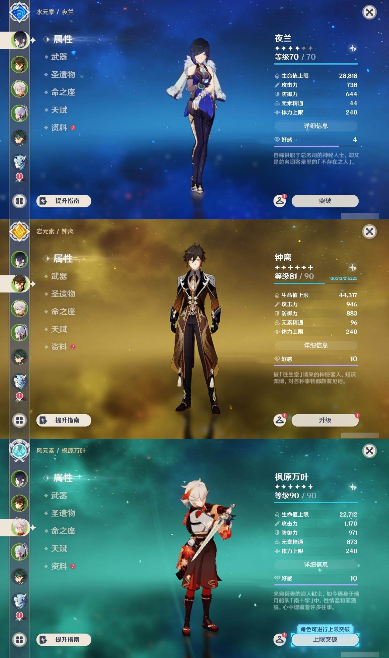 59级/33黄/男主/18个五星角色/5个五星武器