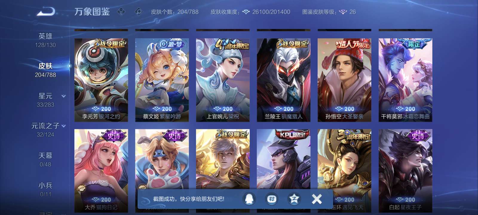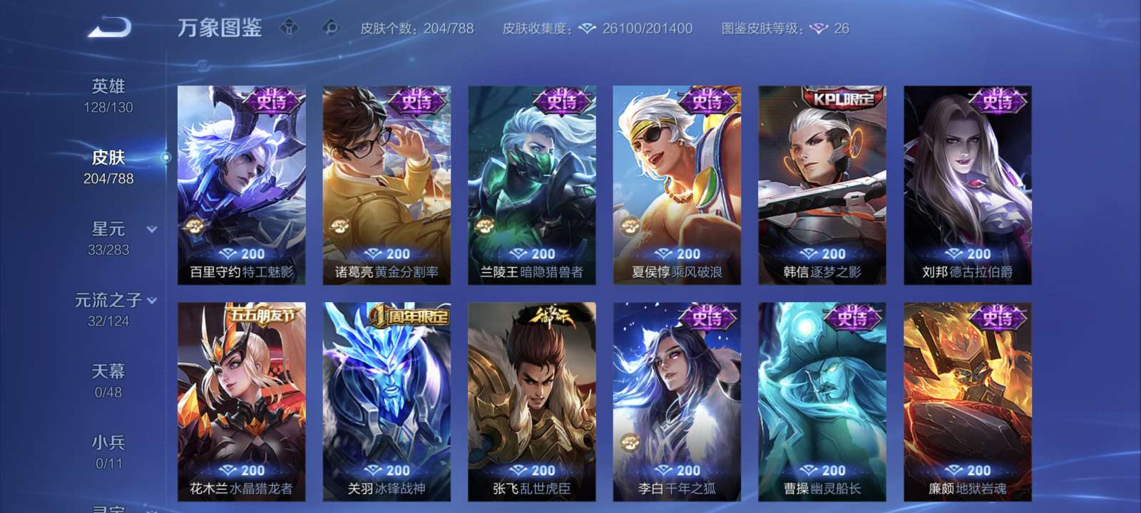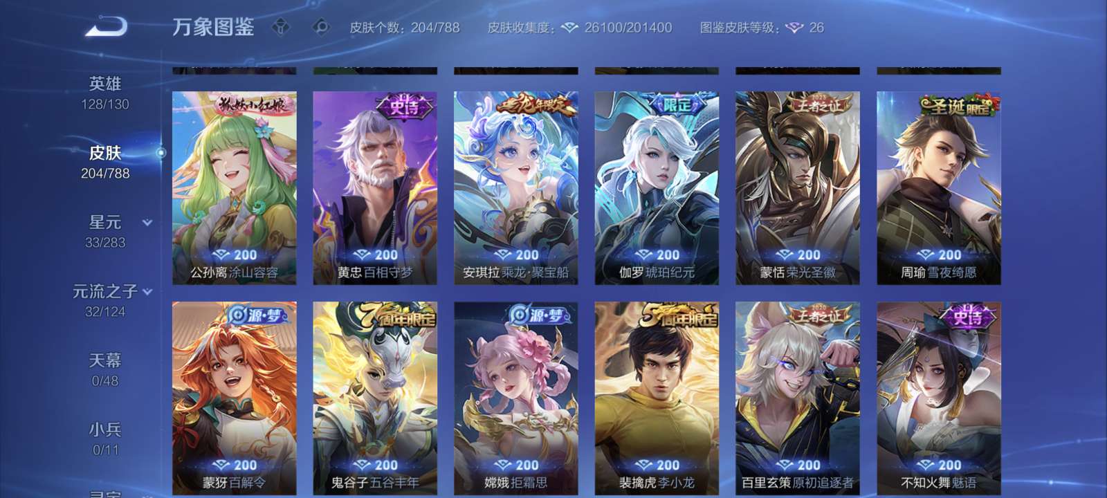 V7 皮肤205 英雄128 永恒钻石 无双皮肤1 传说6