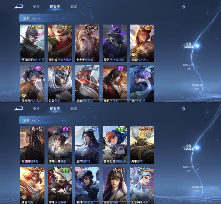 【史诗皮肤】 蔬乡物语 蔬乡物语 星界战将 岱宗 逐梦之音 决胜骁骑 飞衡 傲雪梅枪 如梦令 青龙志 布丁