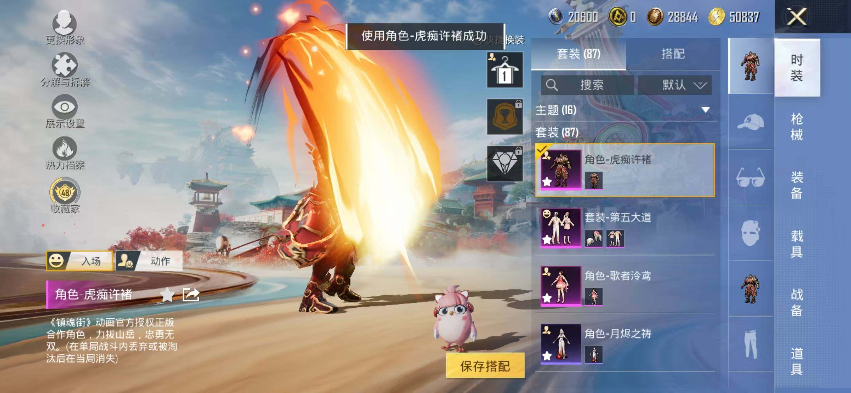 【粉色套装】:角色-歌者泠鸢,粉装-第五大道,角色-虎痴许褚