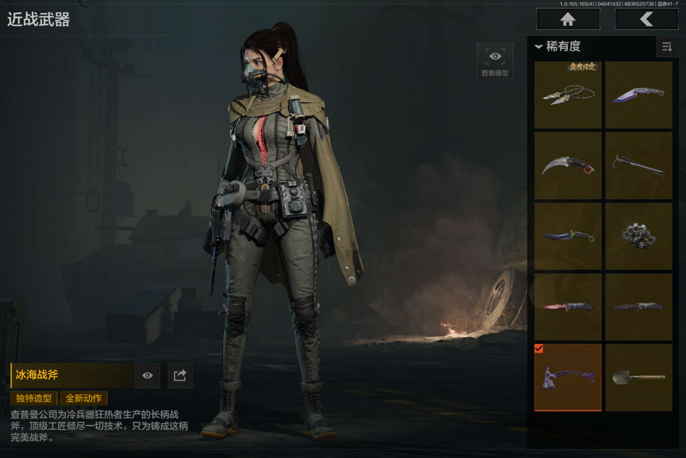 刀皮:瑞兔折刀,急袭弯刀,下弦月,赤心炉心,精英指虎,裁决手杖剑,瀚星斩铁,冰海战斧,野战折刀,工兵铲