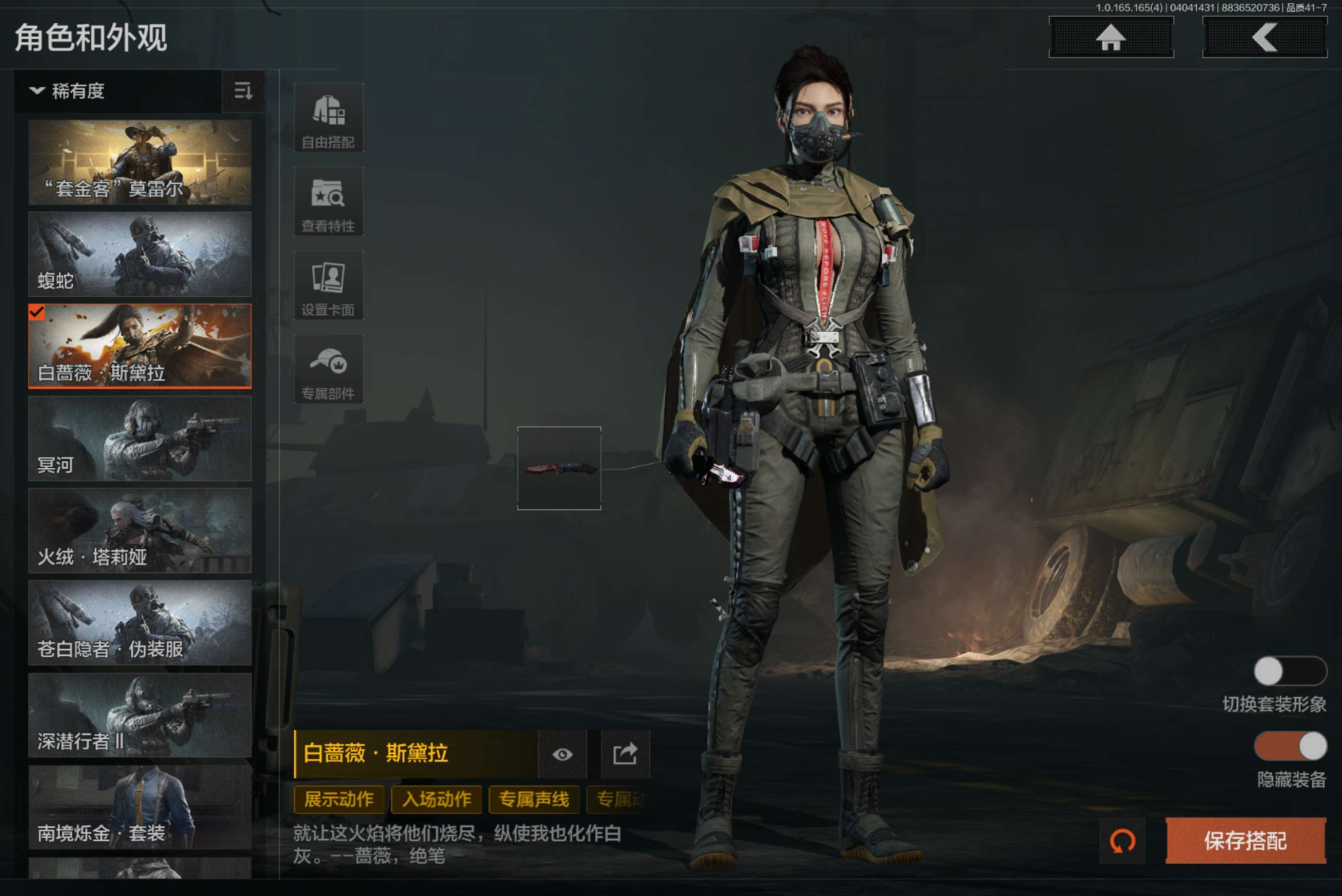 金衣:套金客莫雷尔,蝮蛇,白蔷薇斯黛拉,冥河,火绒塔莉娅,苍白隐者伪装服,深潜行者2