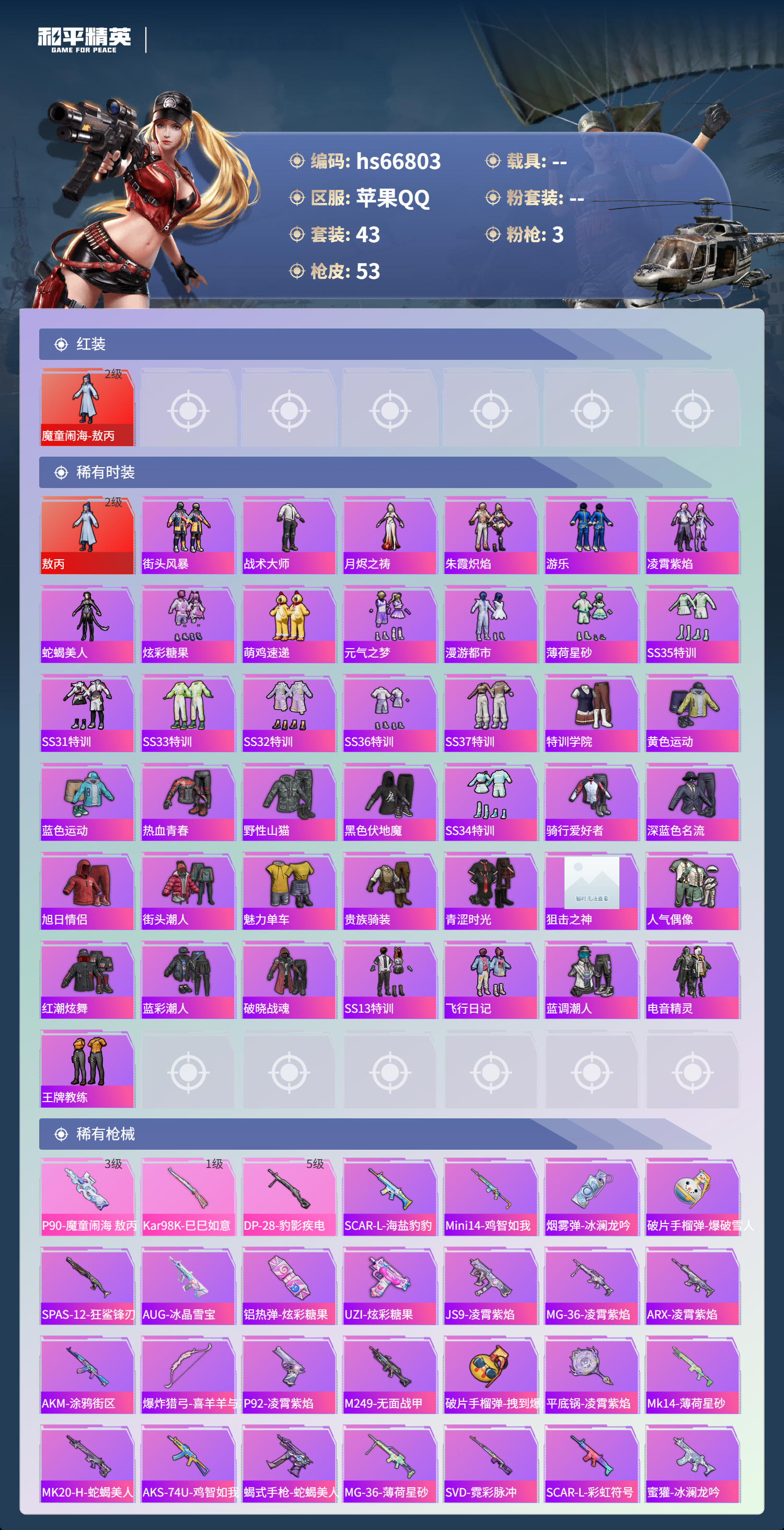 2王牌印记-1红装-3特效枪-17915热力值-43套
