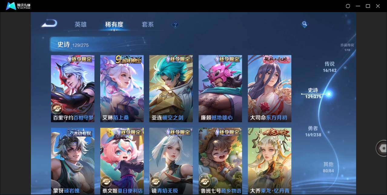 可二次-贵9-129英雄-398皮肤-4典藏(武则天)-1珍品传说-16传说-3星元-9按键-满铭文