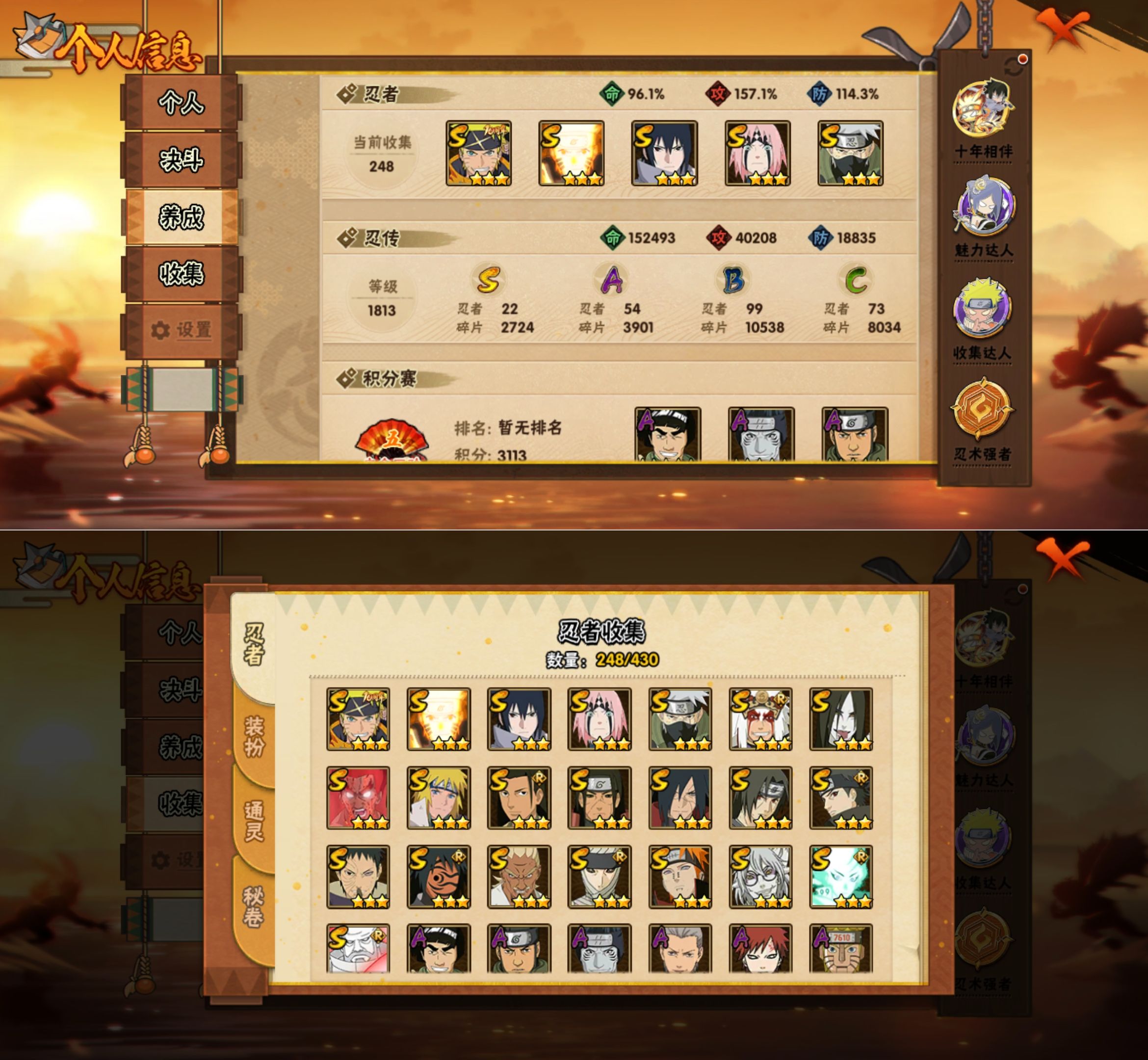 MHY4153【可二次】【S忍者22 A忍者54 通灵19】【安卓Q-2123区-149级-V12-1053万战力】【S级】宇智波带土「忍界大战」 大筒木舍人「最终章」 宇智波佐助「永恒万花筒」 神秘面具男「红夜之刃」 春野樱「忍界大战」 佩恩「天道」 迈特凯「死门」 宇智波鼬「须佐能乎」 药师兜「仙人模式」 大蛇丸 漩涡鸣人·宇智波佐助 千手柱间「木叶创立」 漩涡鸣人「九喇嘛连结」 宇智波止水「须佐能乎」 大筒木金式 无「二代目土影」 波风水门 艾「忍界大战」 千手柱间「秽土转生」 宇智波斑「