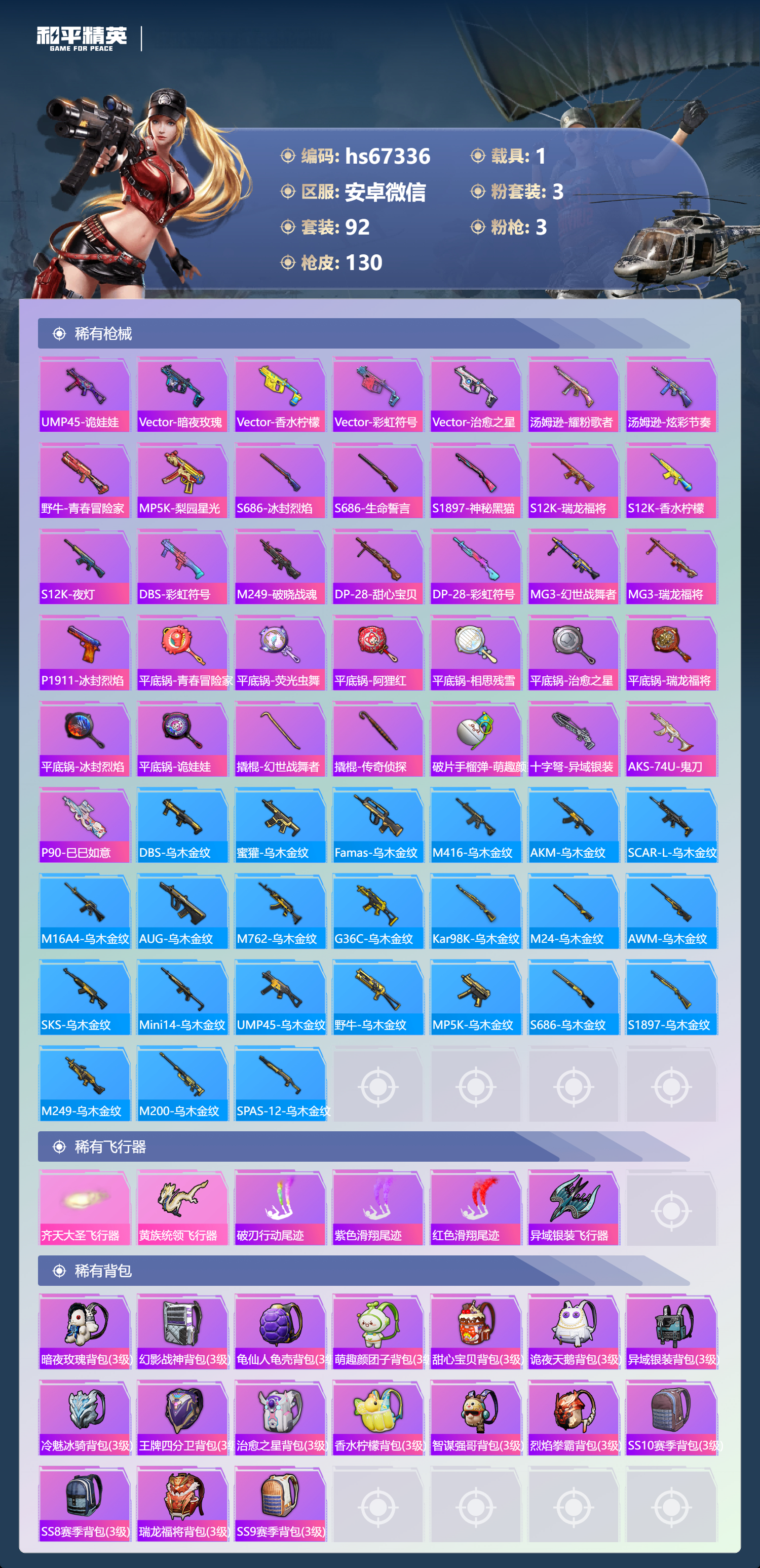 8王牌印记-3粉装-3特效枪-1载具-40099热力值