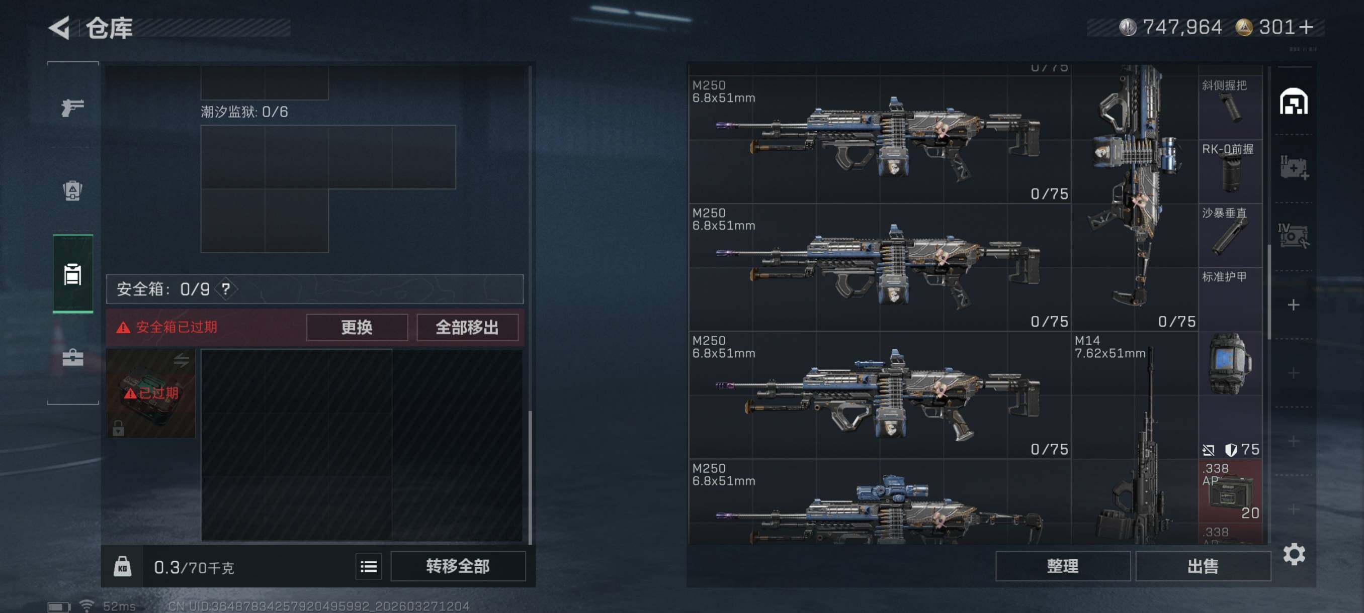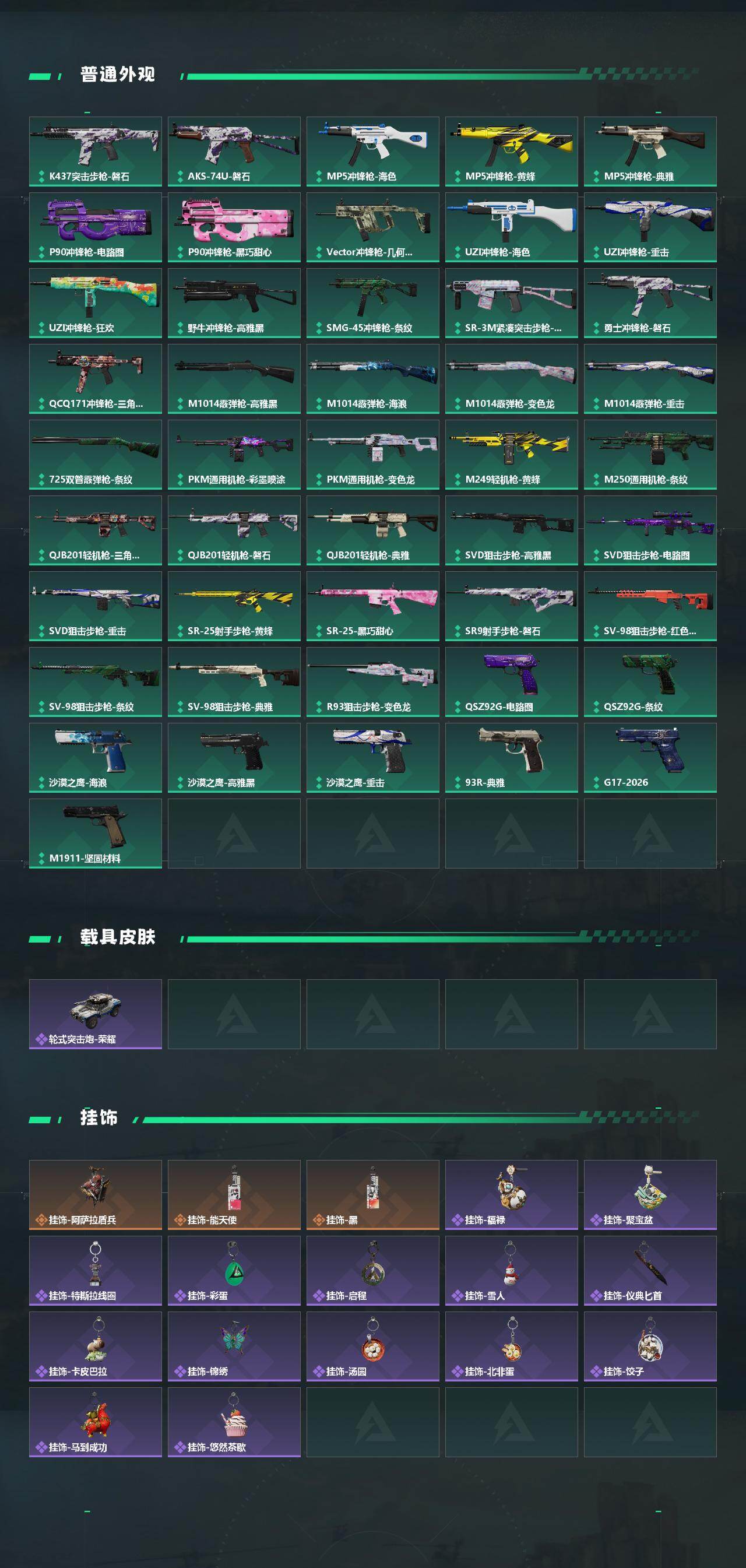 总资产63M/哈夫币74万/传说近战数1/传说枪皮数27/战场等级16/行动等级60/安全箱等时效性道具以游戏内数据为准,详情请看图/露娜-黑·天际线/蛊-能天使·午夜邮差/红狼-电锯惊魂/露娜-金牌射手/乌鲁鲁-荒原猎手/近战-影锋/近战-黑鹰/AS Val突击步枪-悬赏令/AS Val突击步枪-悬赏令(优品C)/M4A1突击步枪-阿米娅/AKM突击步枪-锦绣/AUG突击步枪-悠然茶歇/M7