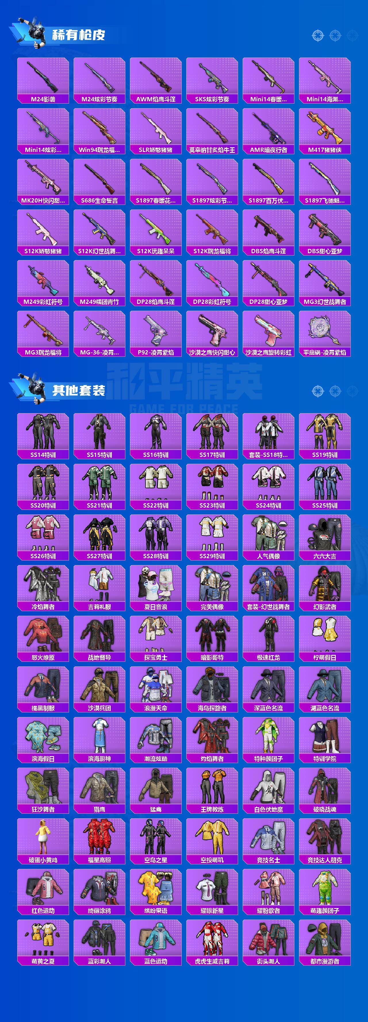 粉装3/粉枪4/套装146/枪皮172/热力值50435/历史最高段位:王牌印记13次/Lv:59/五级SCAR-L-锦绣绵绵/五级Kar98K-巳巳如意/五级Mk14-福马献瑞/四级DP-28-豹影疾电/套装-浪漫天命/都市猎人/深海小丑鱼/小丑鱼/套装-暗影哥特/角色-Mark.06/第五大道/千金淑猫/角色-冷漠罗丽/SCAR-L-锦绣绵绵/Kar98K-巳巳如意/Mk14-福马献瑞/D