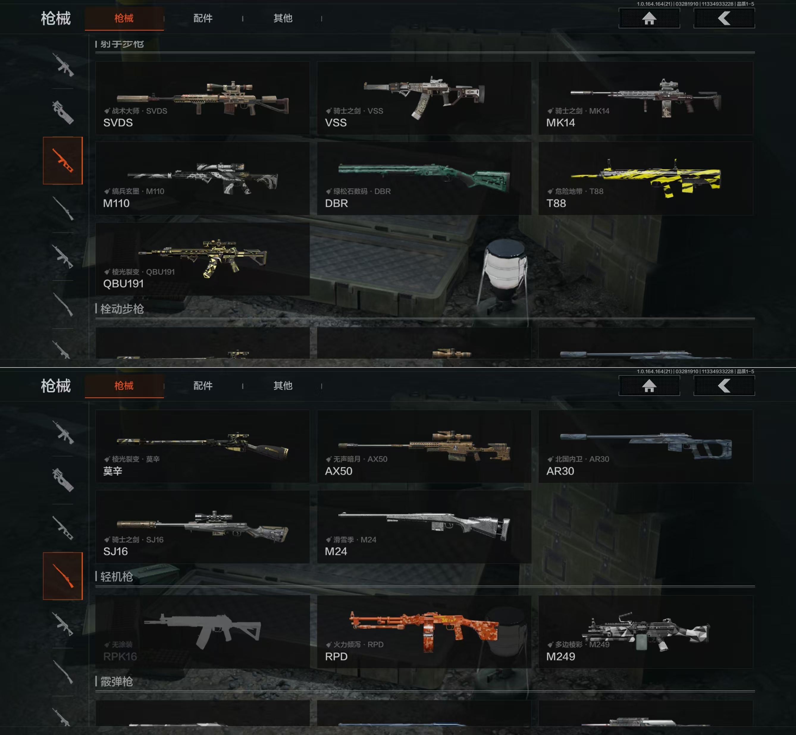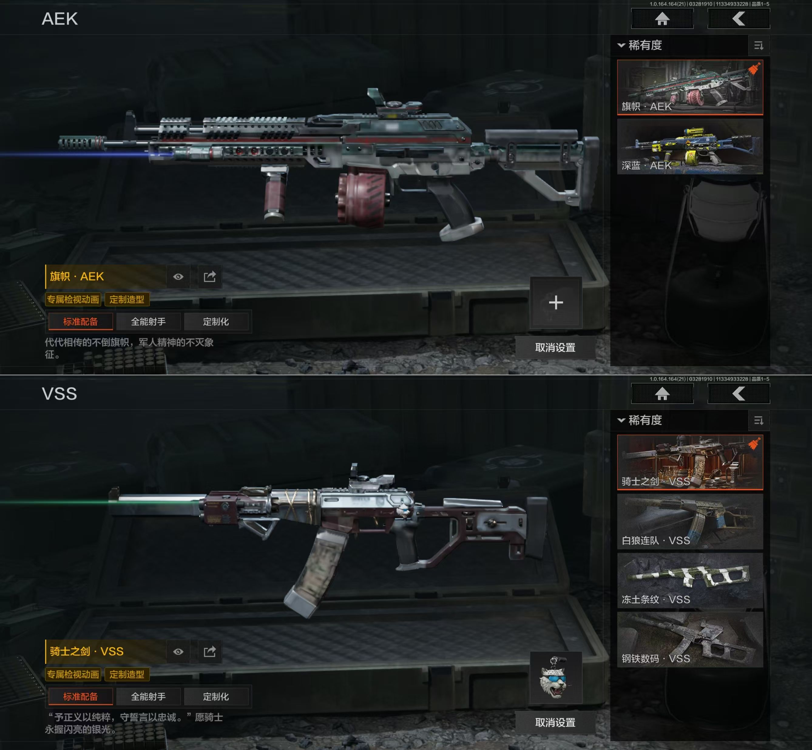 MWT5043安卓Q-等级30-仓库价值2.5m -科恩币546663 -【套装】 和平先锋作战套装 财团之手作战套装 金红闪电·套装 都市夜影套装 【枪皮】 旗帜·AEK 骑士之剑·VSS 棱光裂变·QBU191 【近战武器】 赢家匕首 盘牙·彻甲短刃