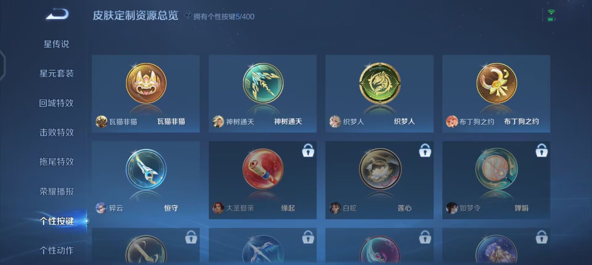 【限定皮肤】:白起狰,狄仁杰阴阳师,虞姬凯尔特女王,赵云皇家上将,孙尚香蔷薇恋人,庄周高山流水,芈月重明,元歌云间偶戏,